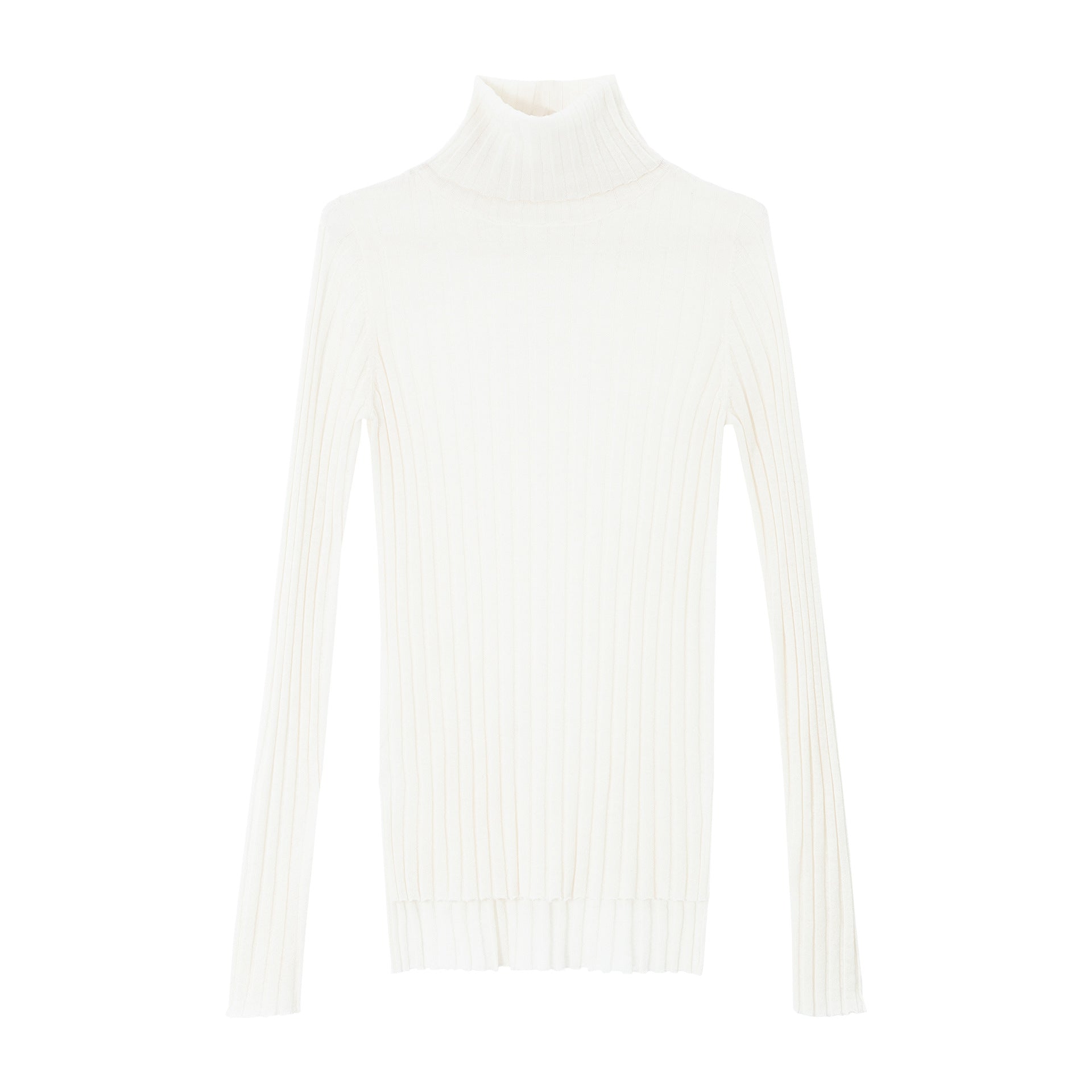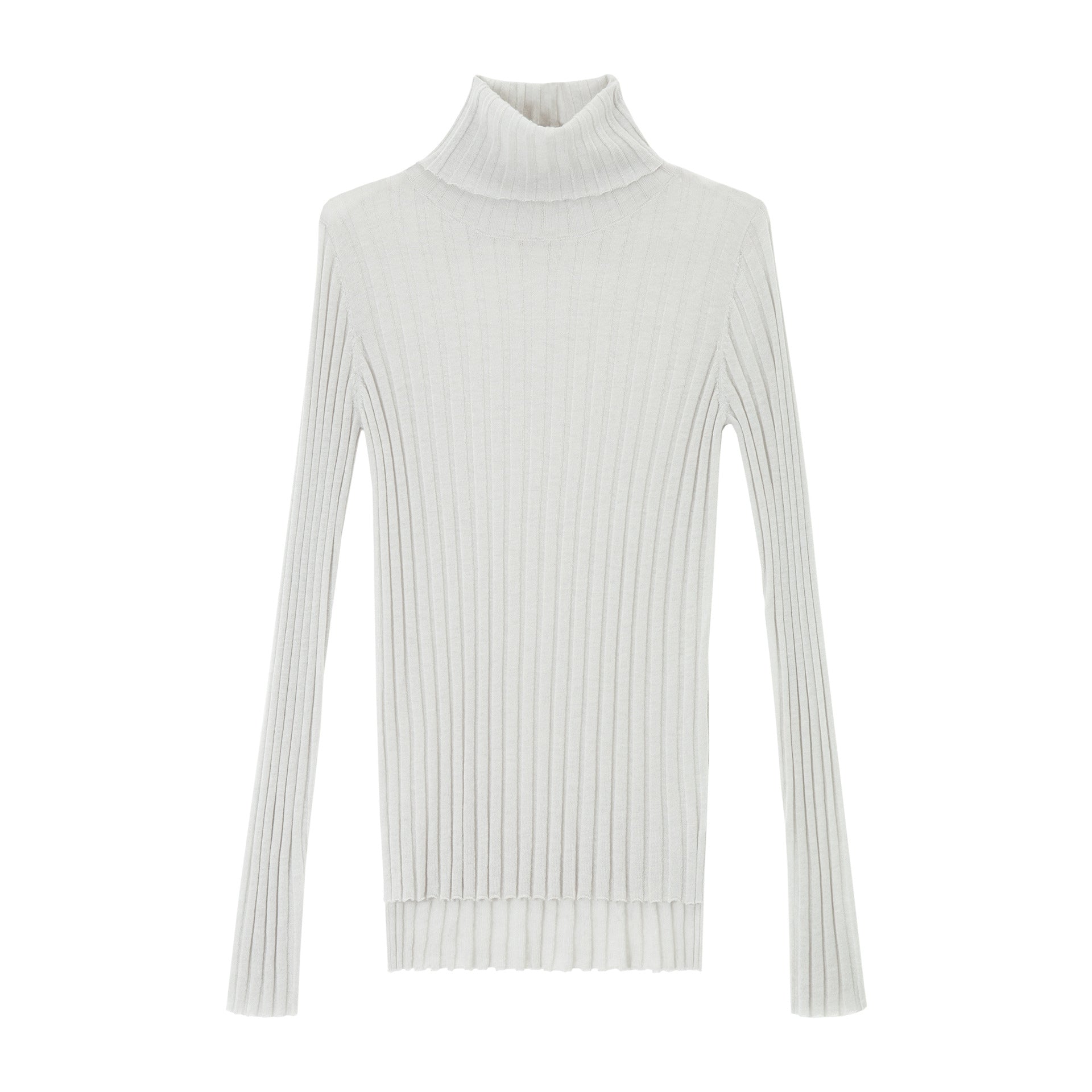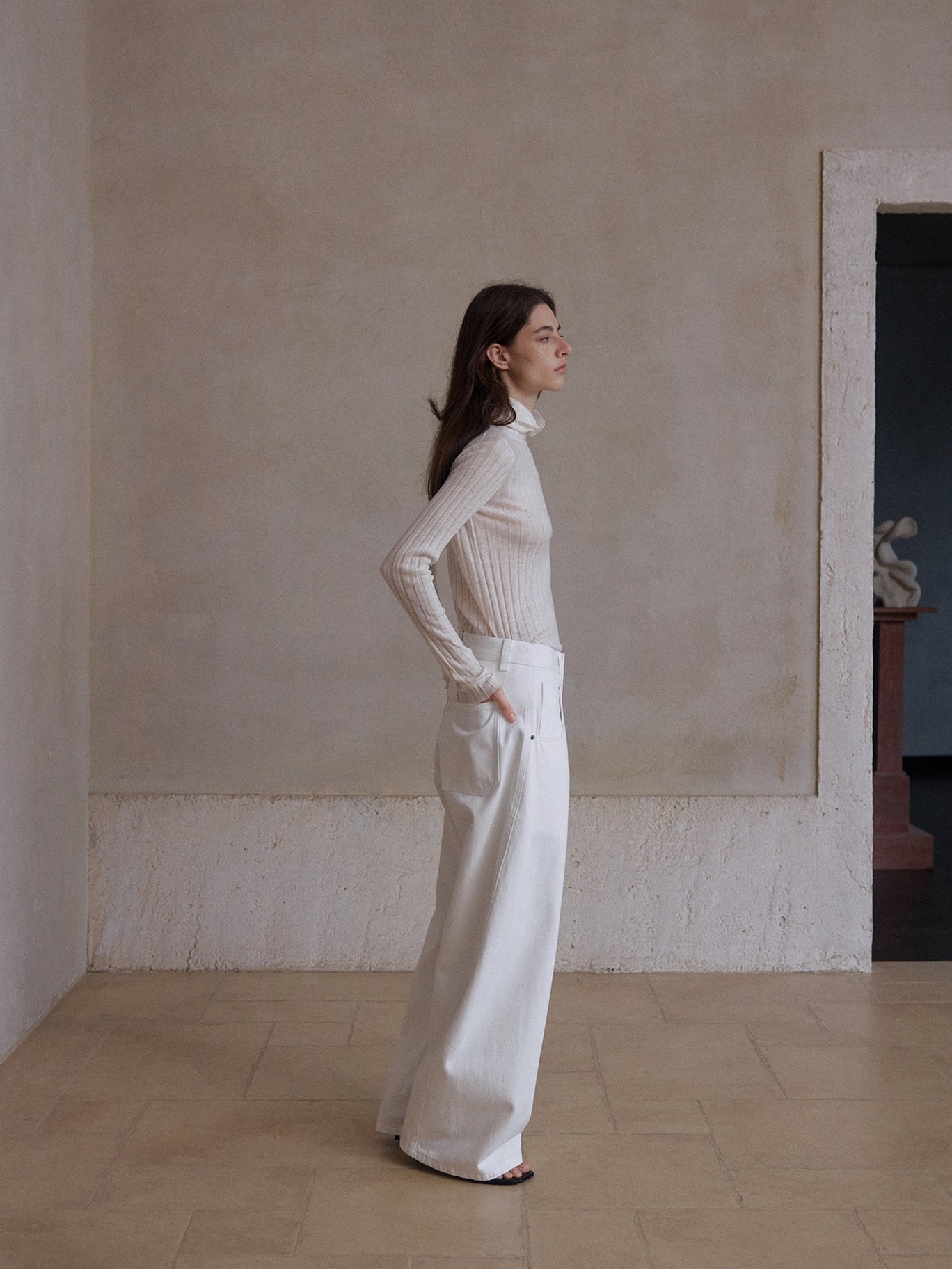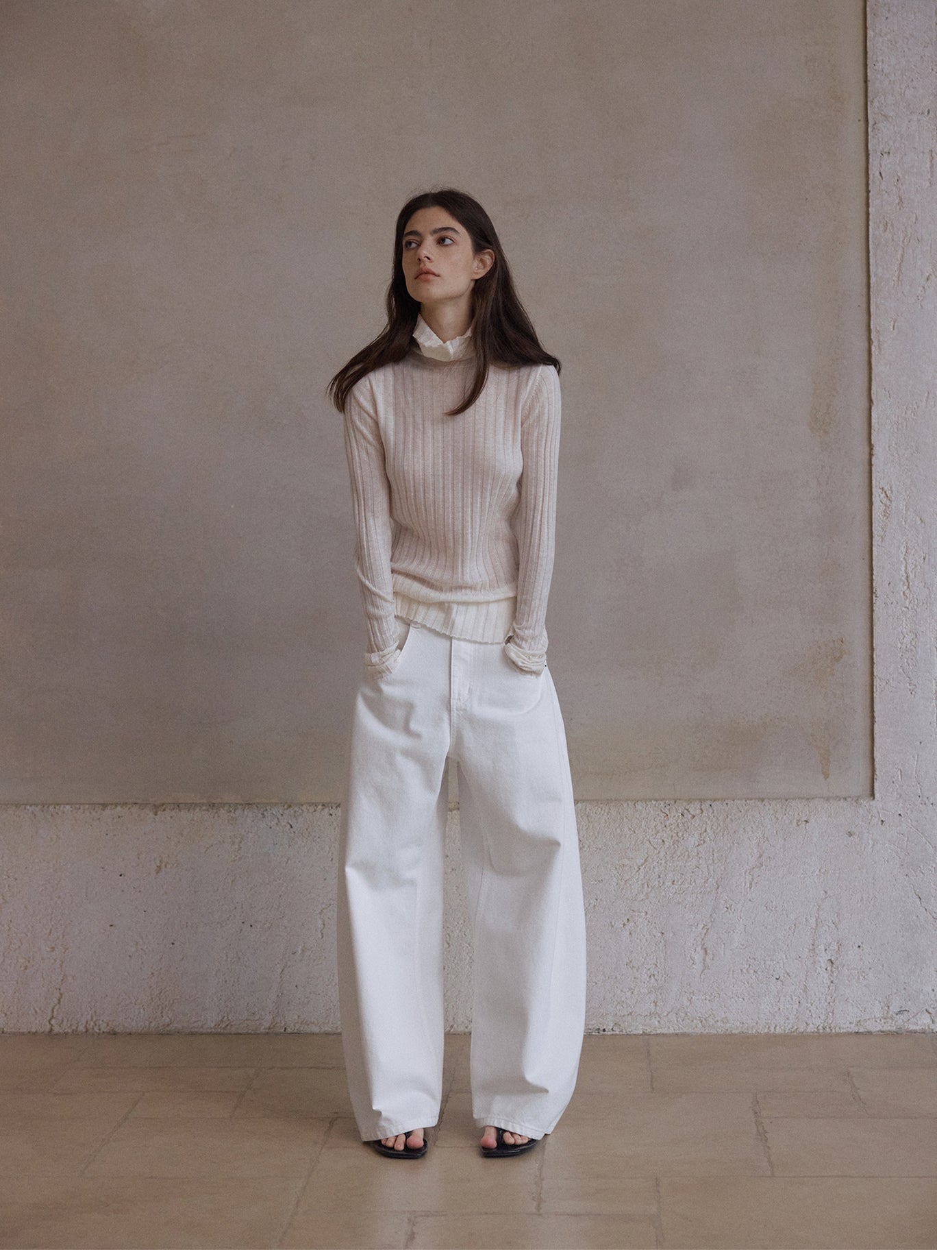 上質なウール糸を細番手で編み立てたリブニット素材。