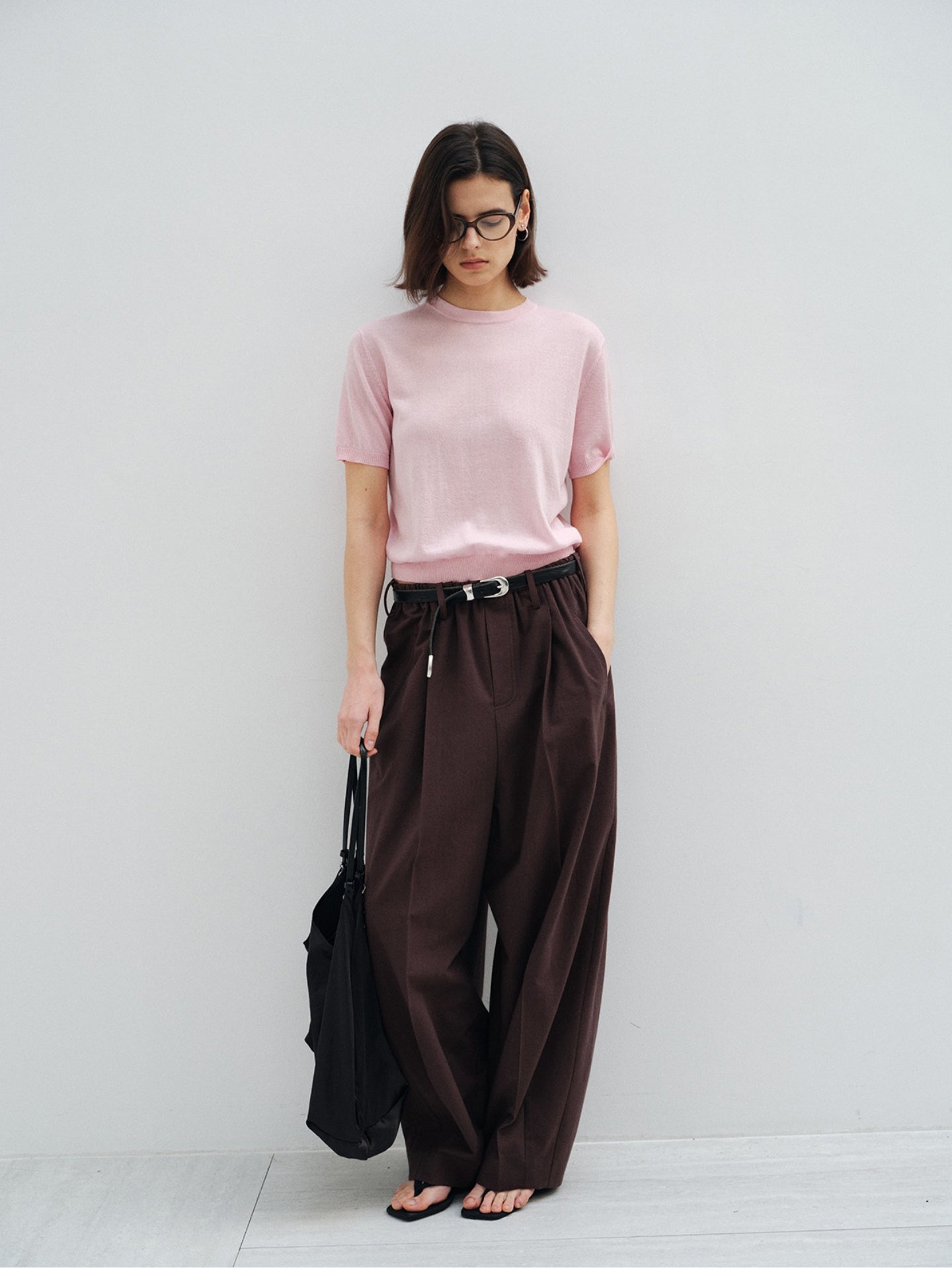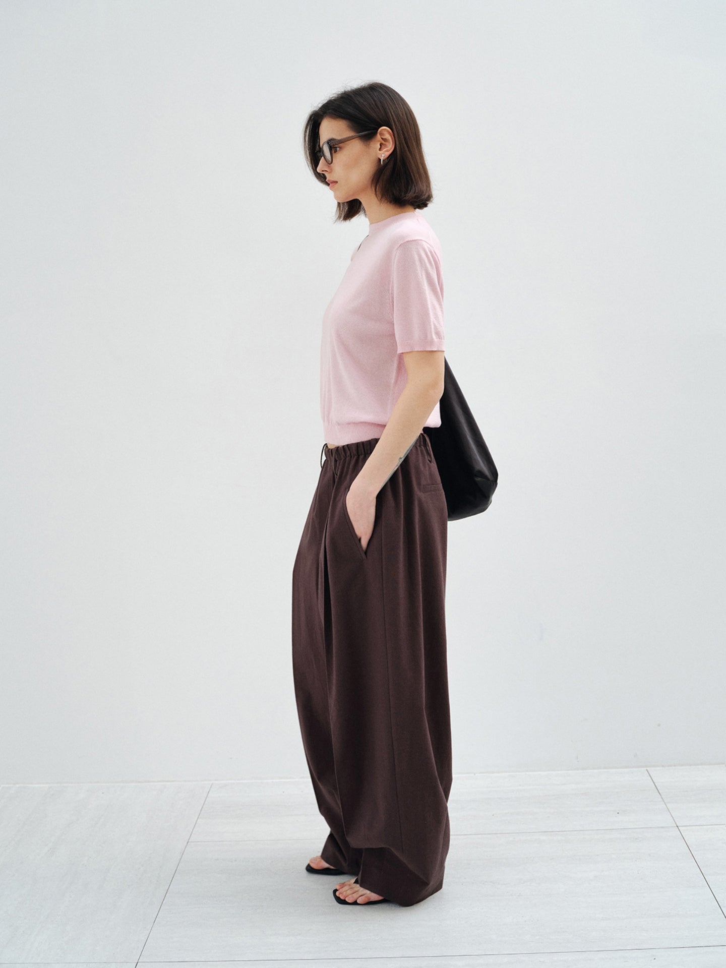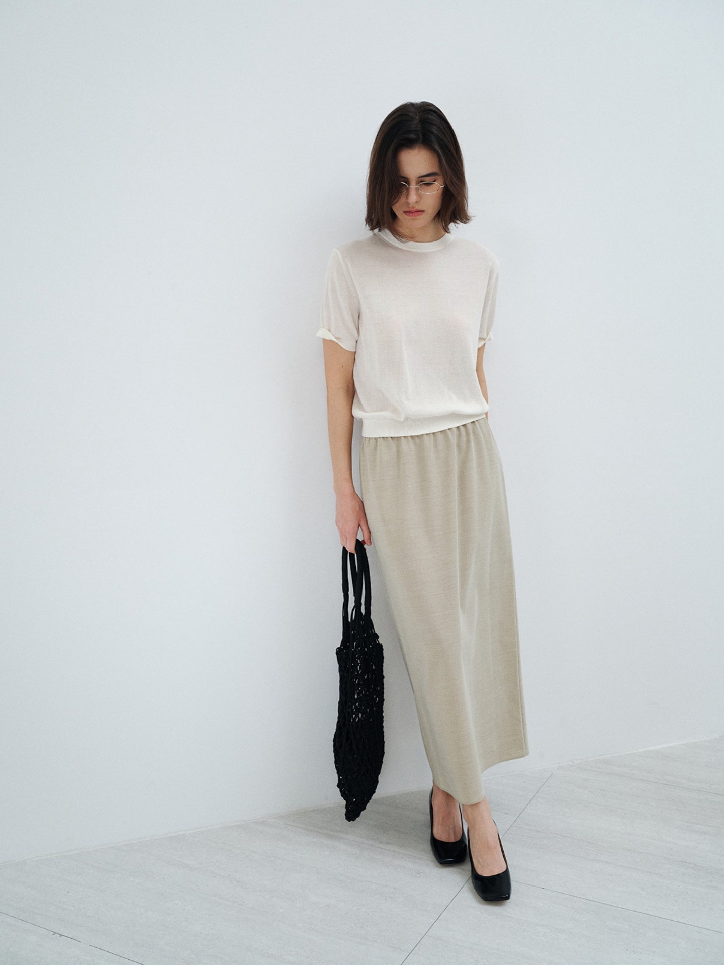 ミニマルなルックの中に奥行きのあるニュアンスを与え、無地ながらもクラス感漂う佇まいを構築。