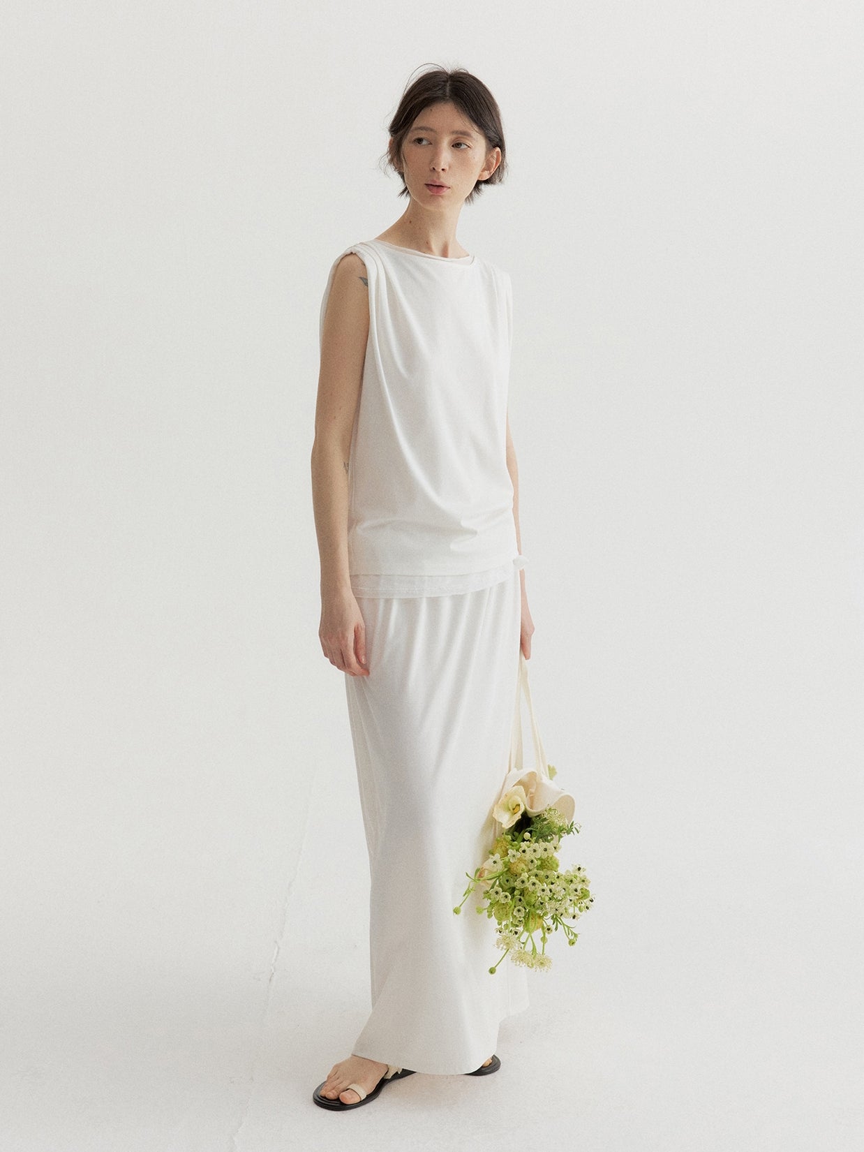シルク混タックノースリーブ【セットアップ可】