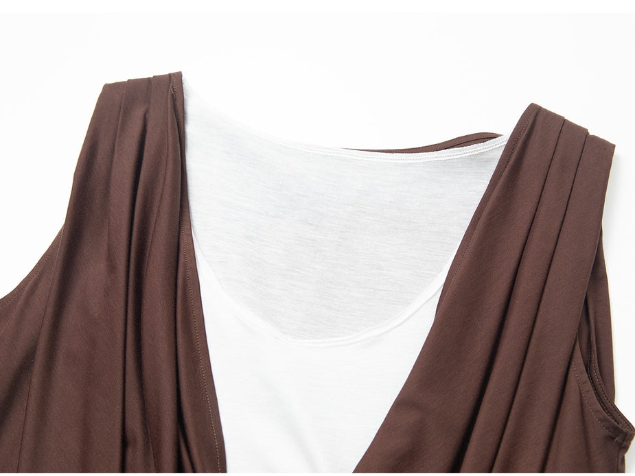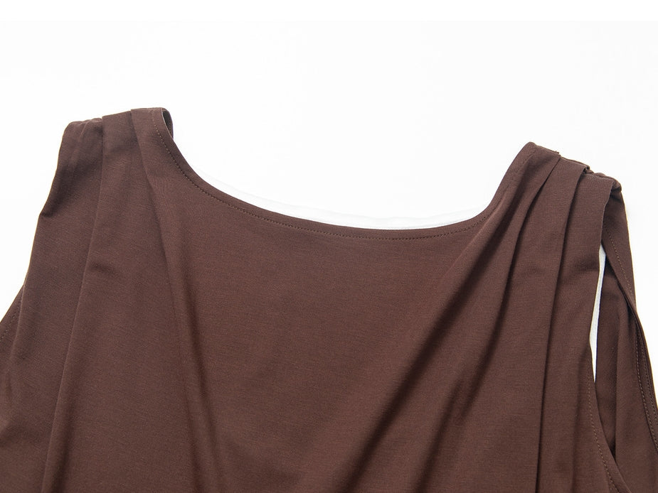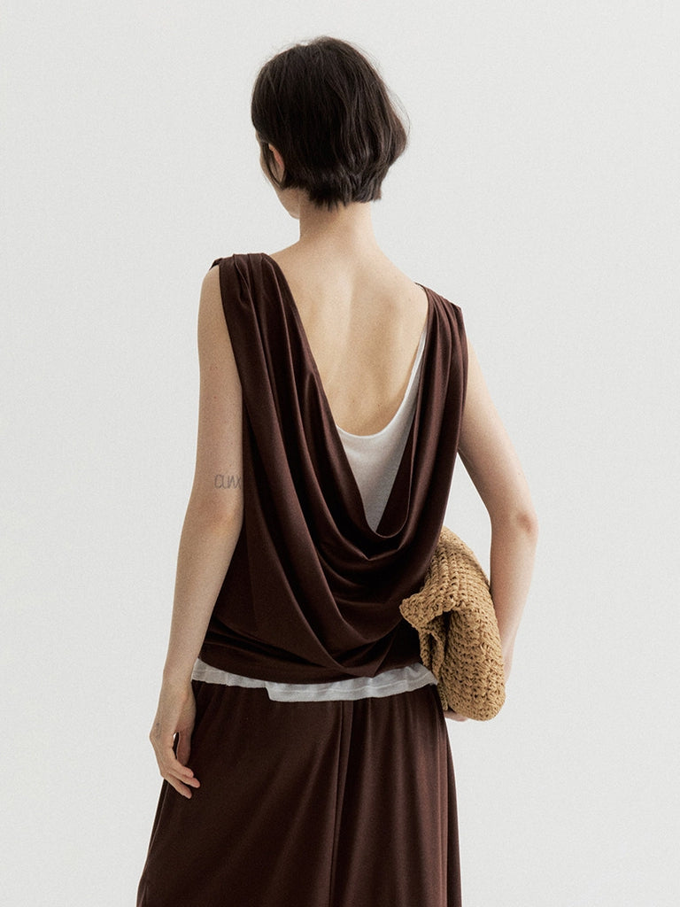 滑らかで心地の良い肌触りのシルク混タックノースリーブ。