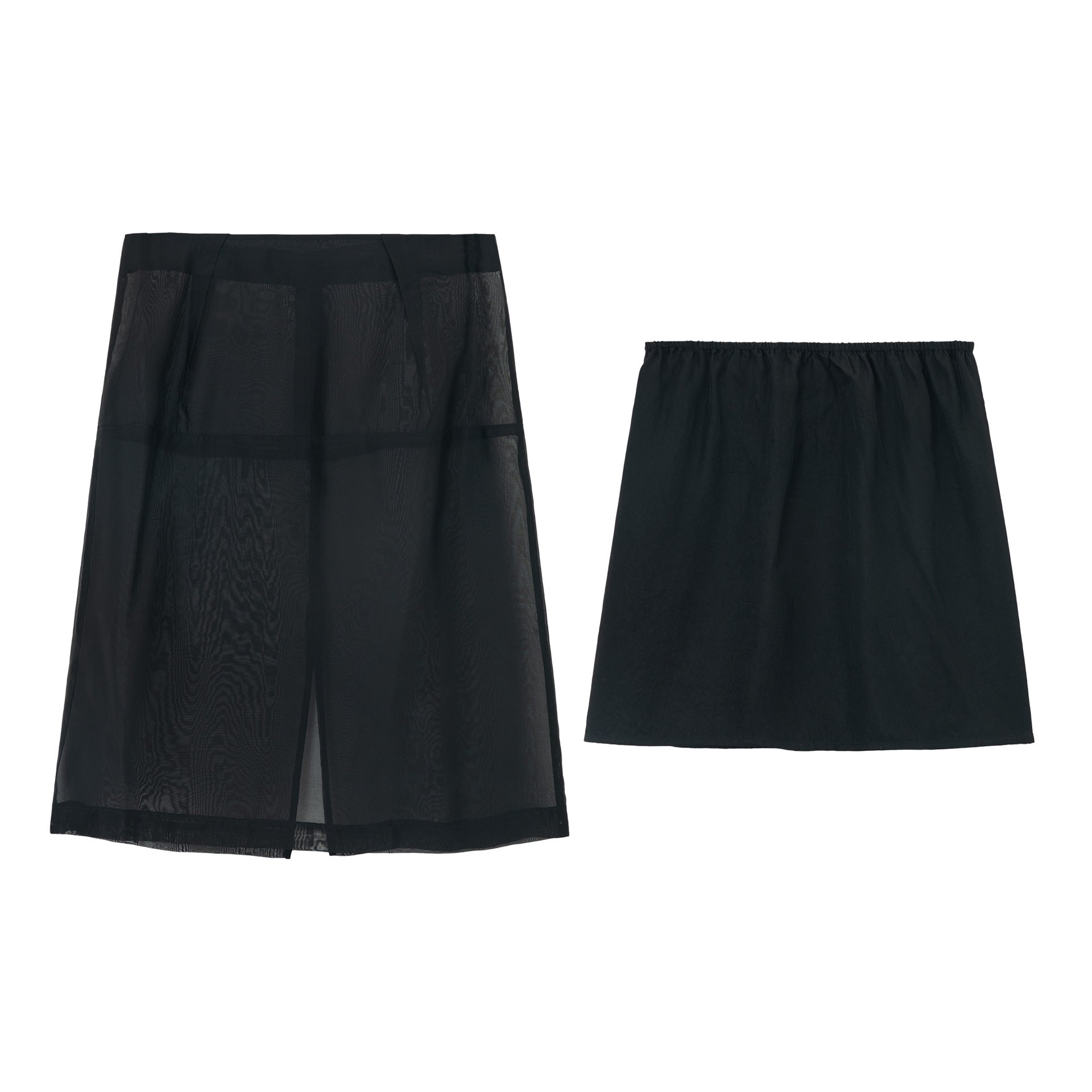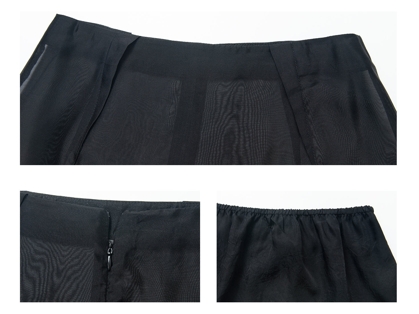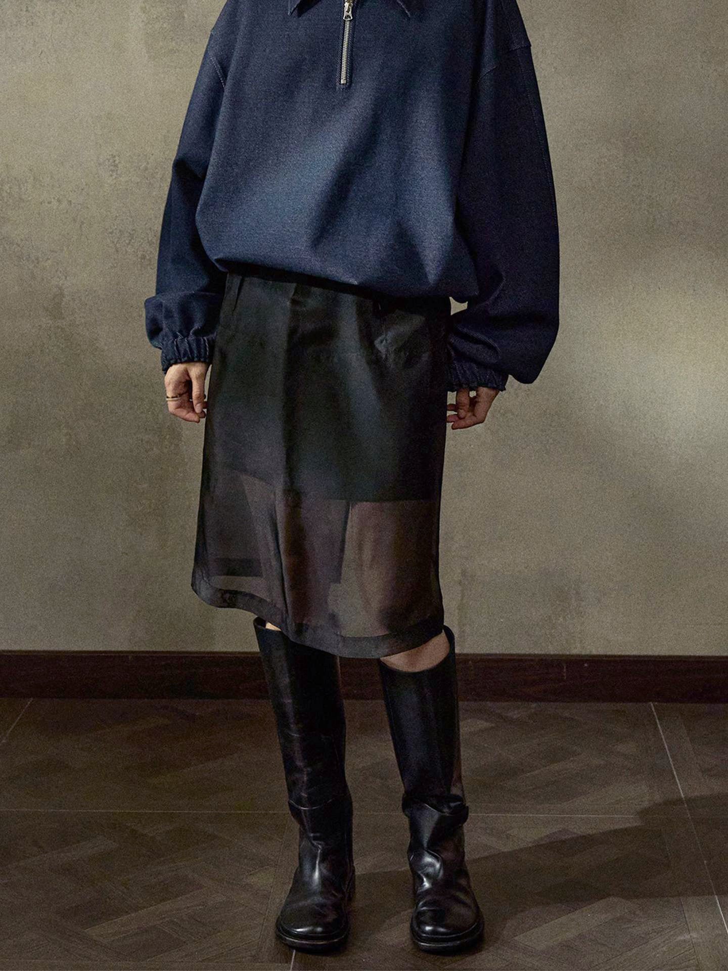 軽やかなシアー素材を重ねたレイヤードデザインが印象的なミディアムスカート。