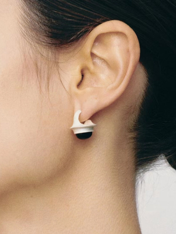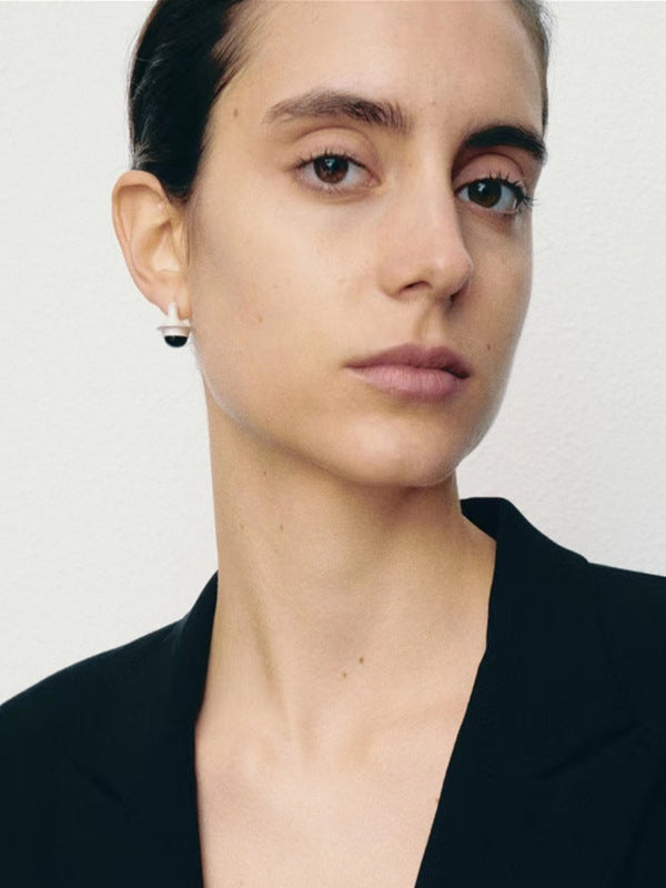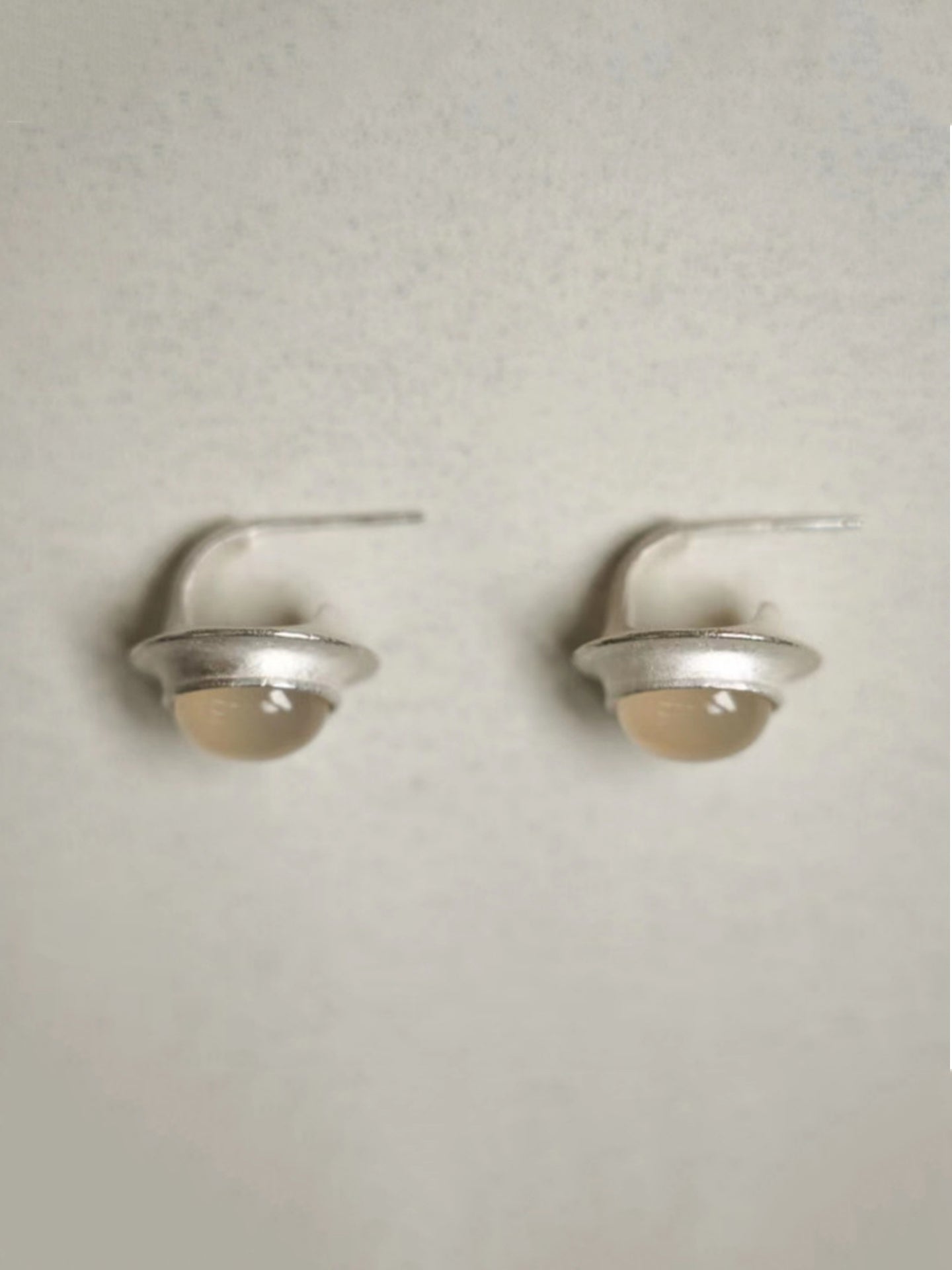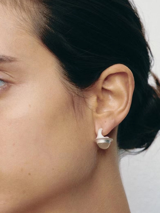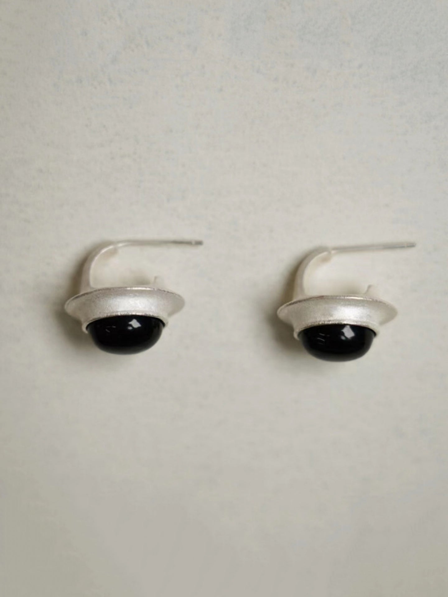 構築的なフォルムに、程よく主張するマットな質感。 艶消し仕上げのSILVER925ボディに、静かな輝きを放つ天然石を組み合わせたピアス。