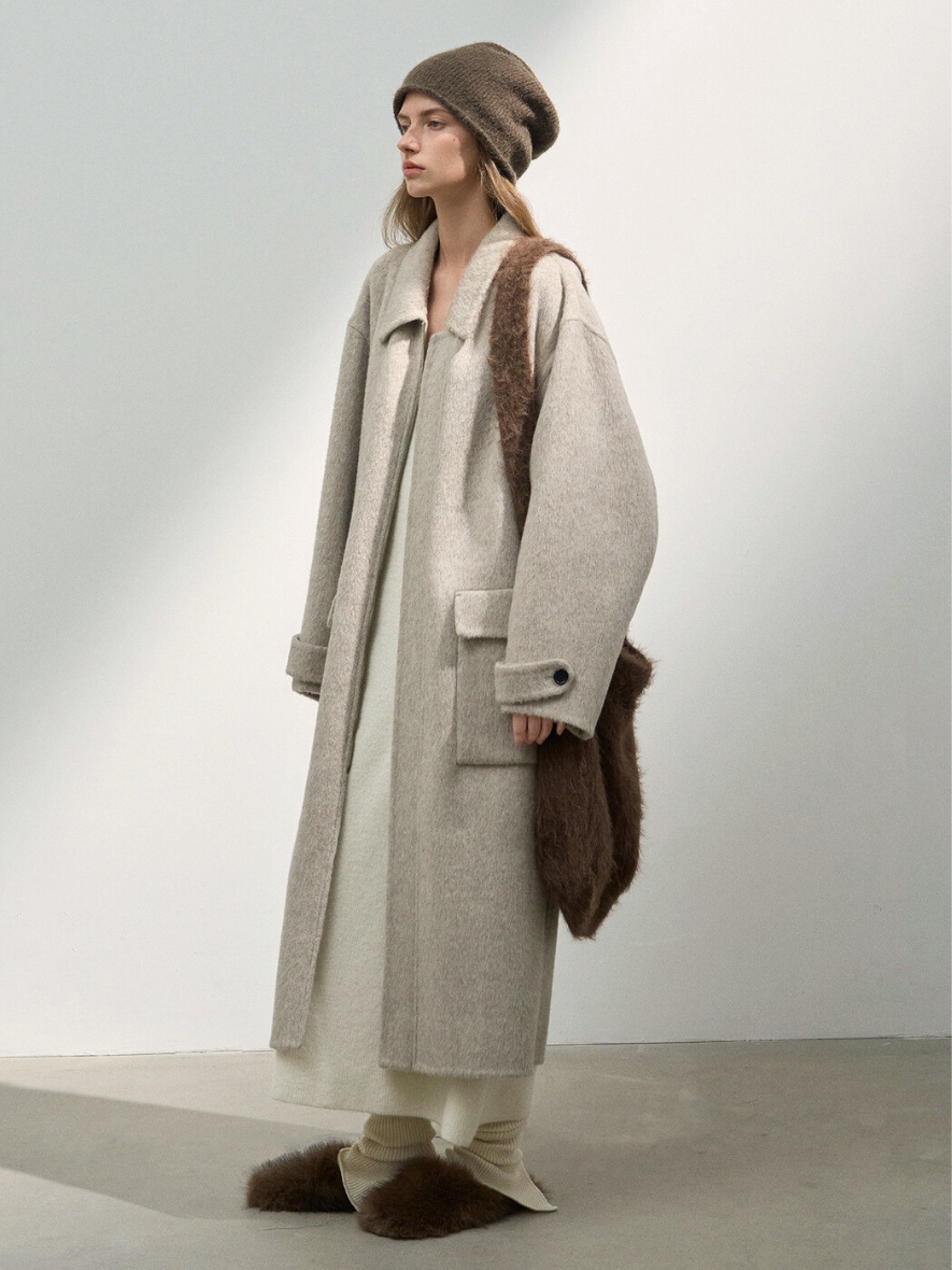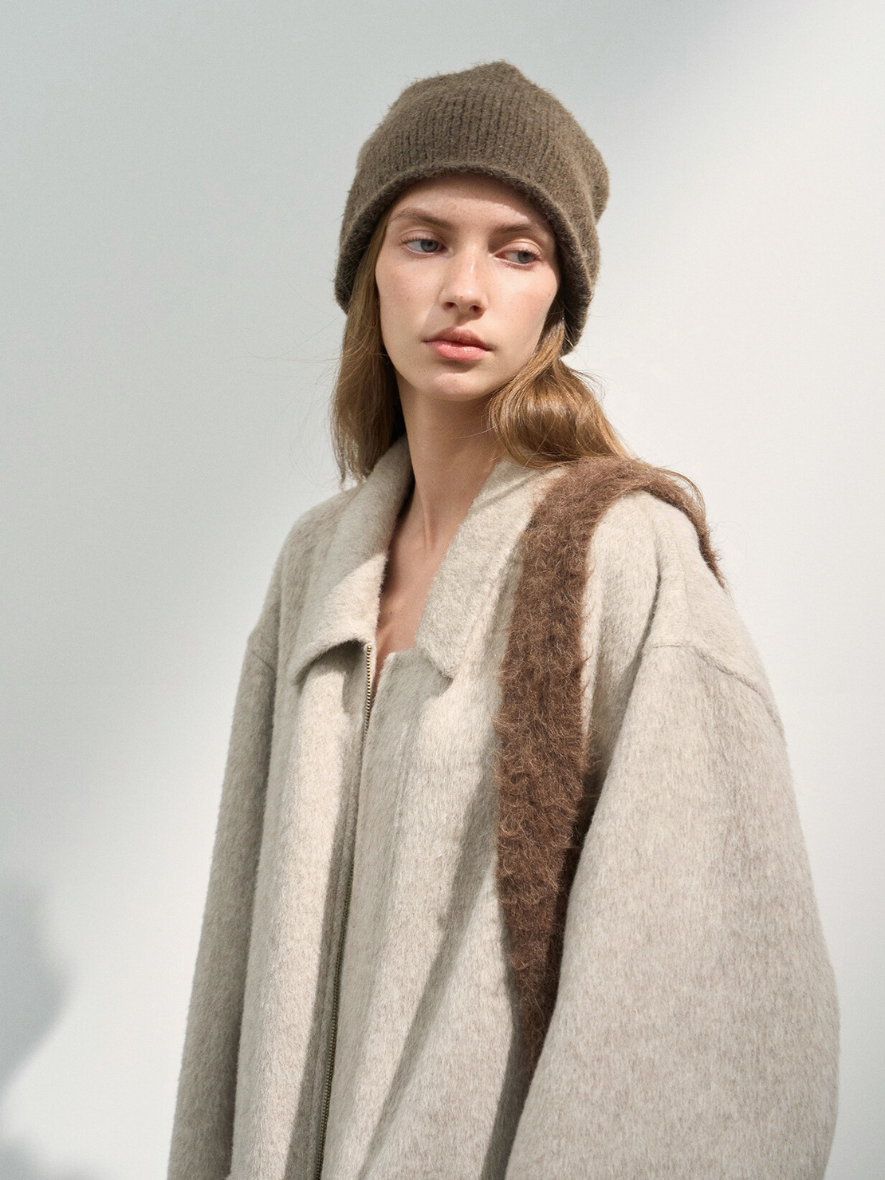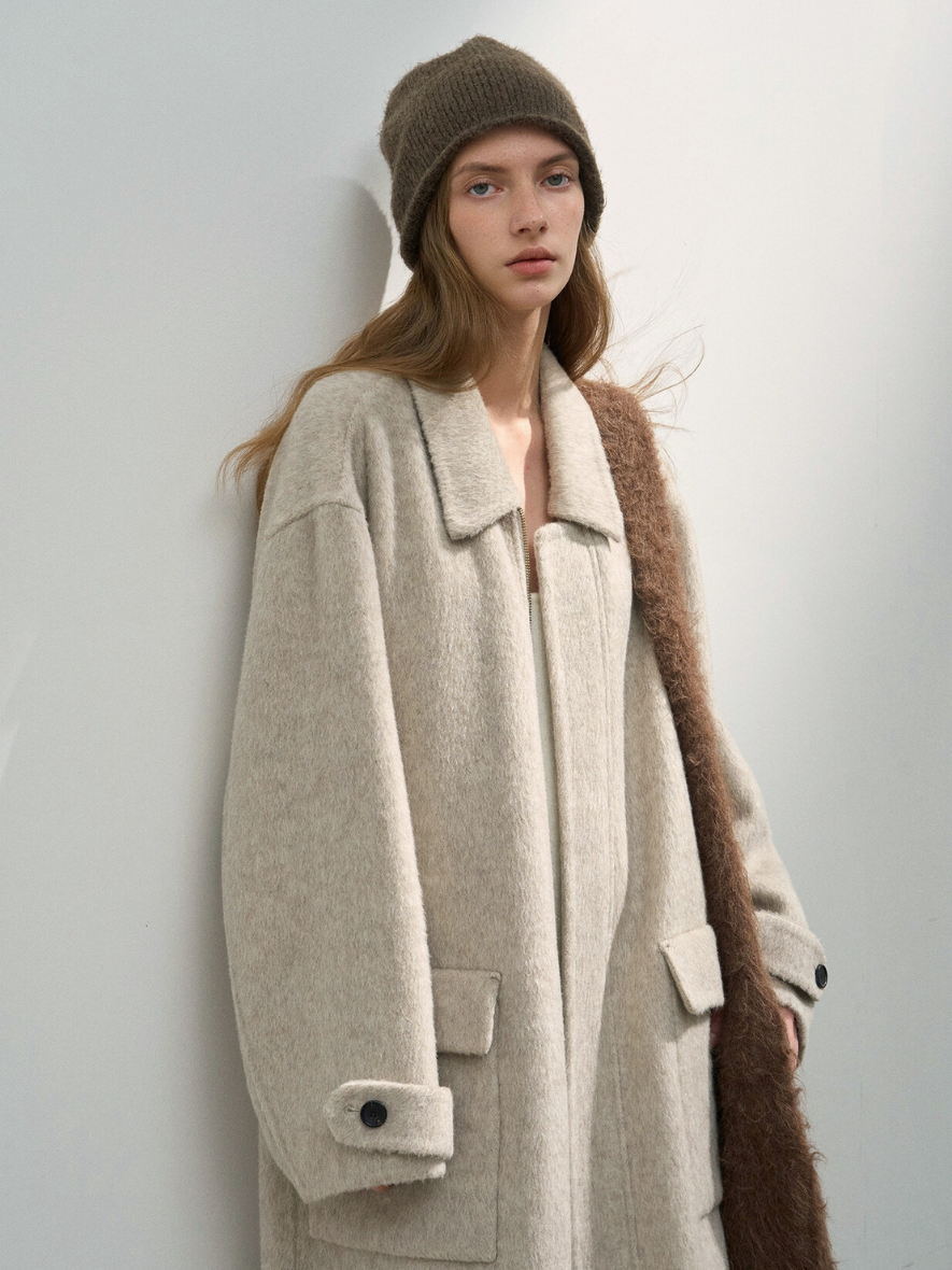 クラシカルで高級感のあるステンカラージップウールコート。