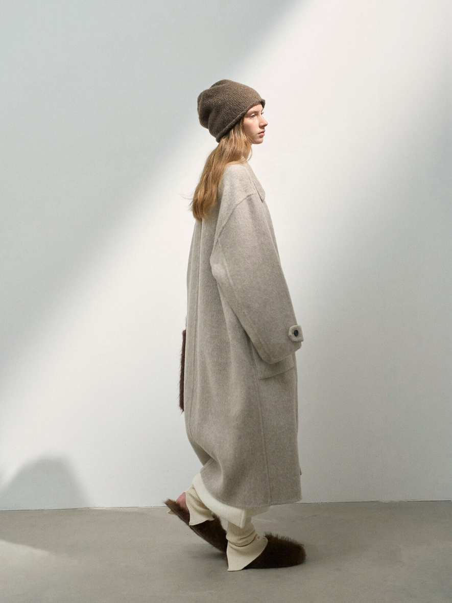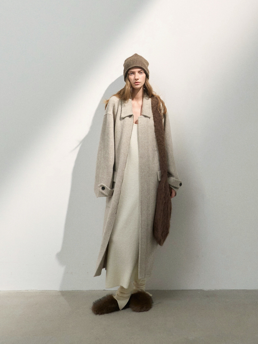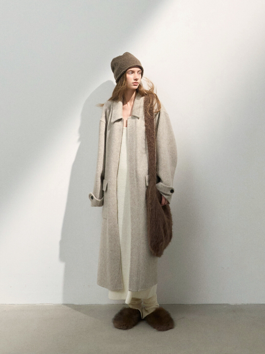 クラシカルで高級感のあるステンカラージップウールコート。