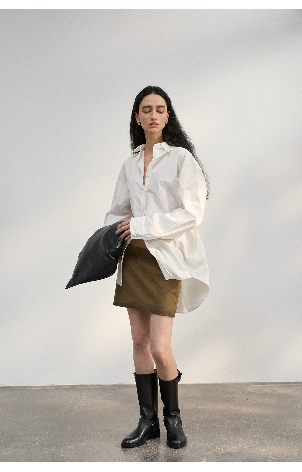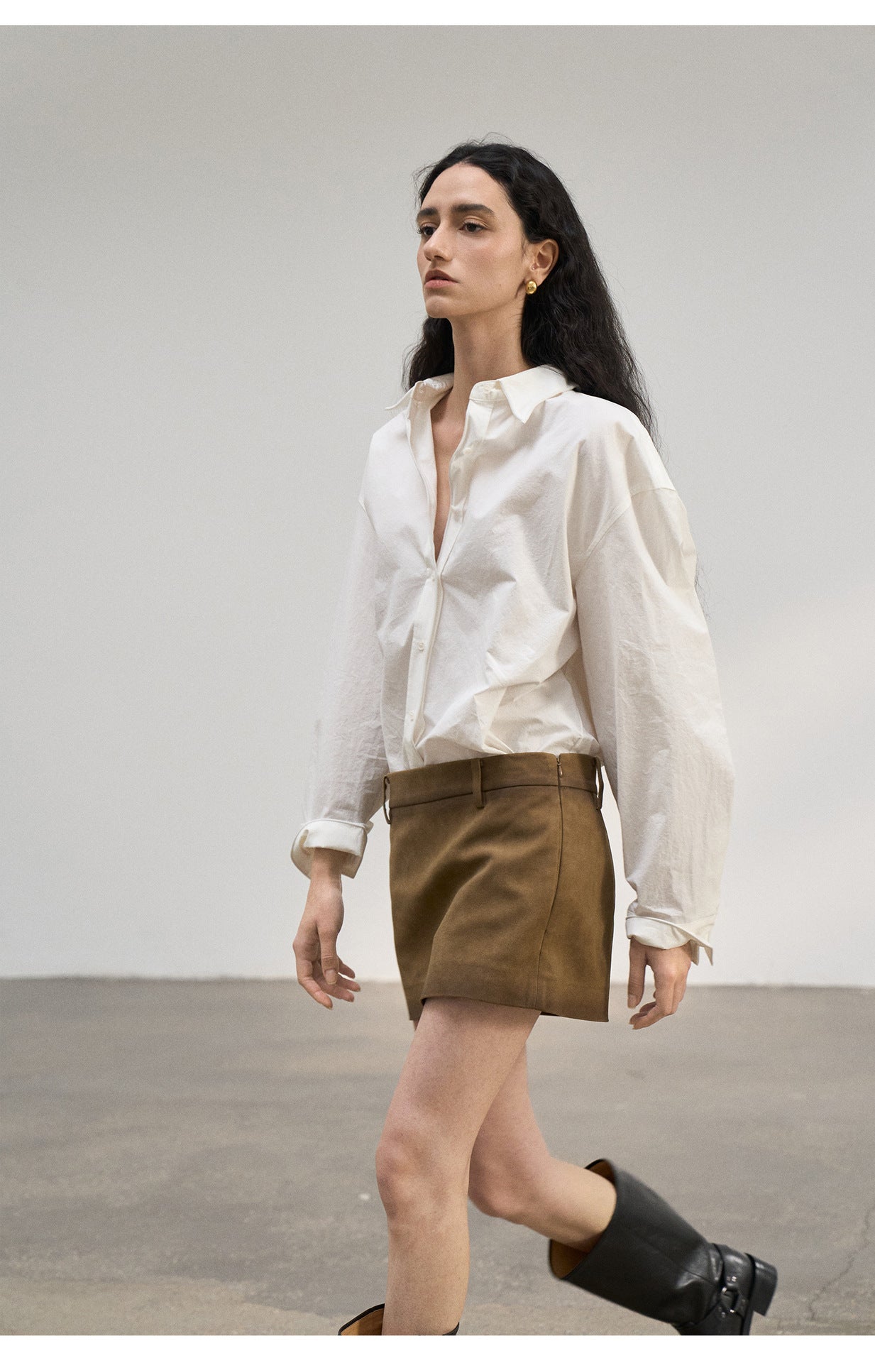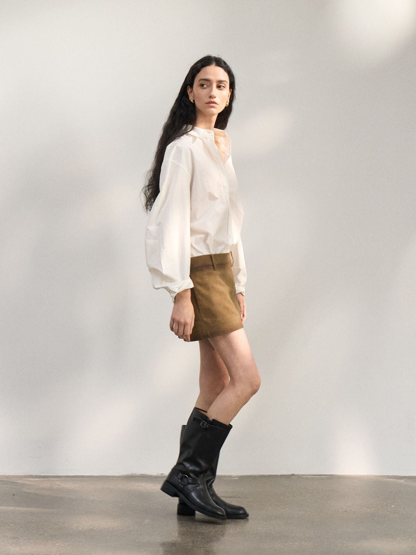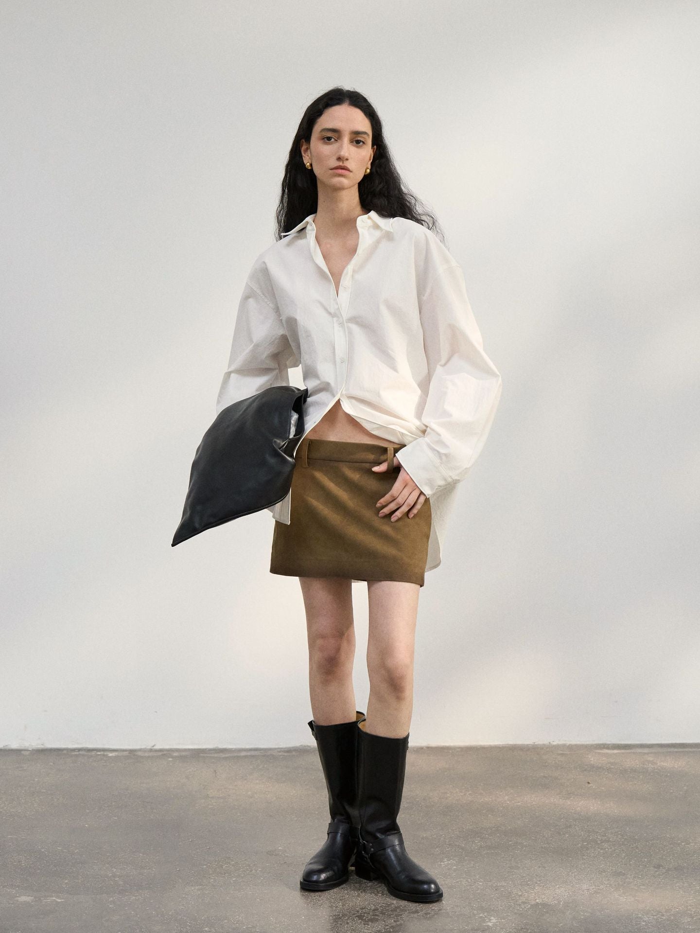 深みのあるスエード素材は大人な着こなしにもマッチする素材。