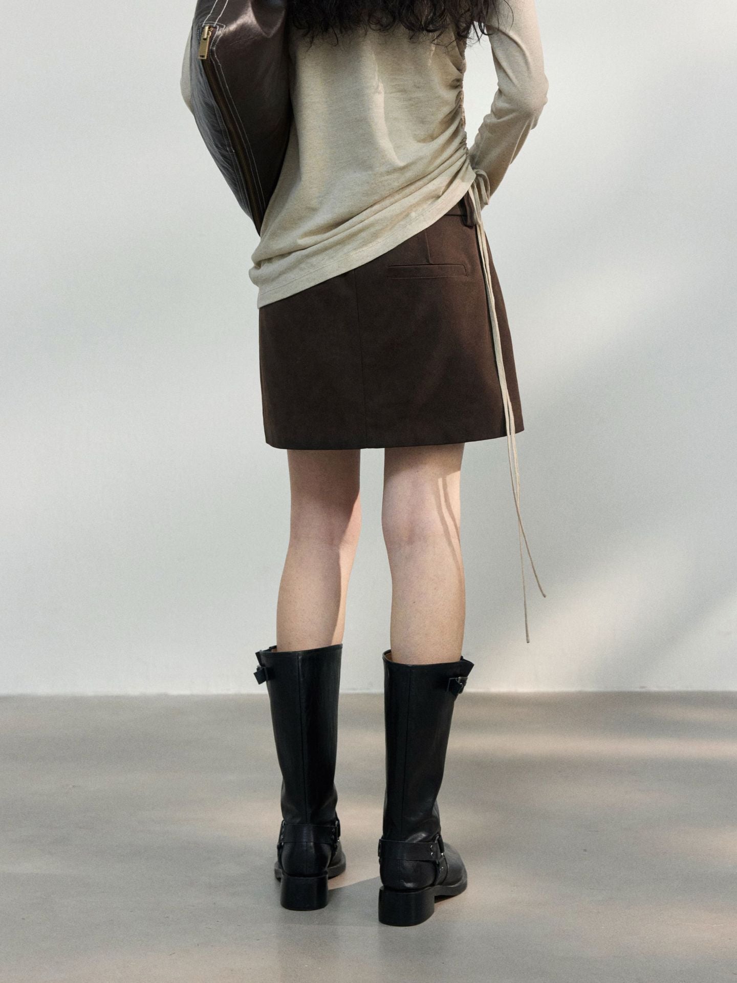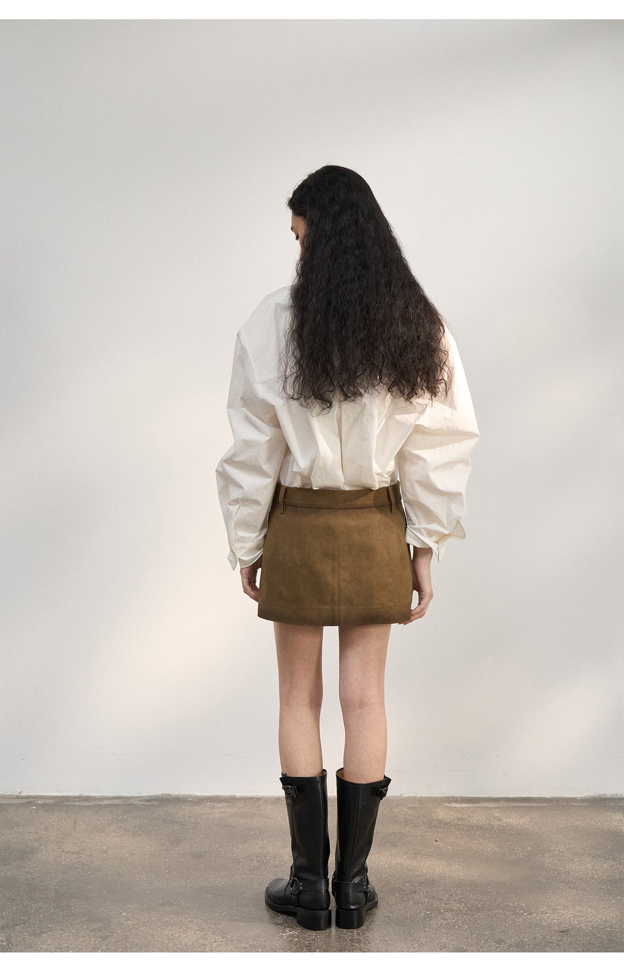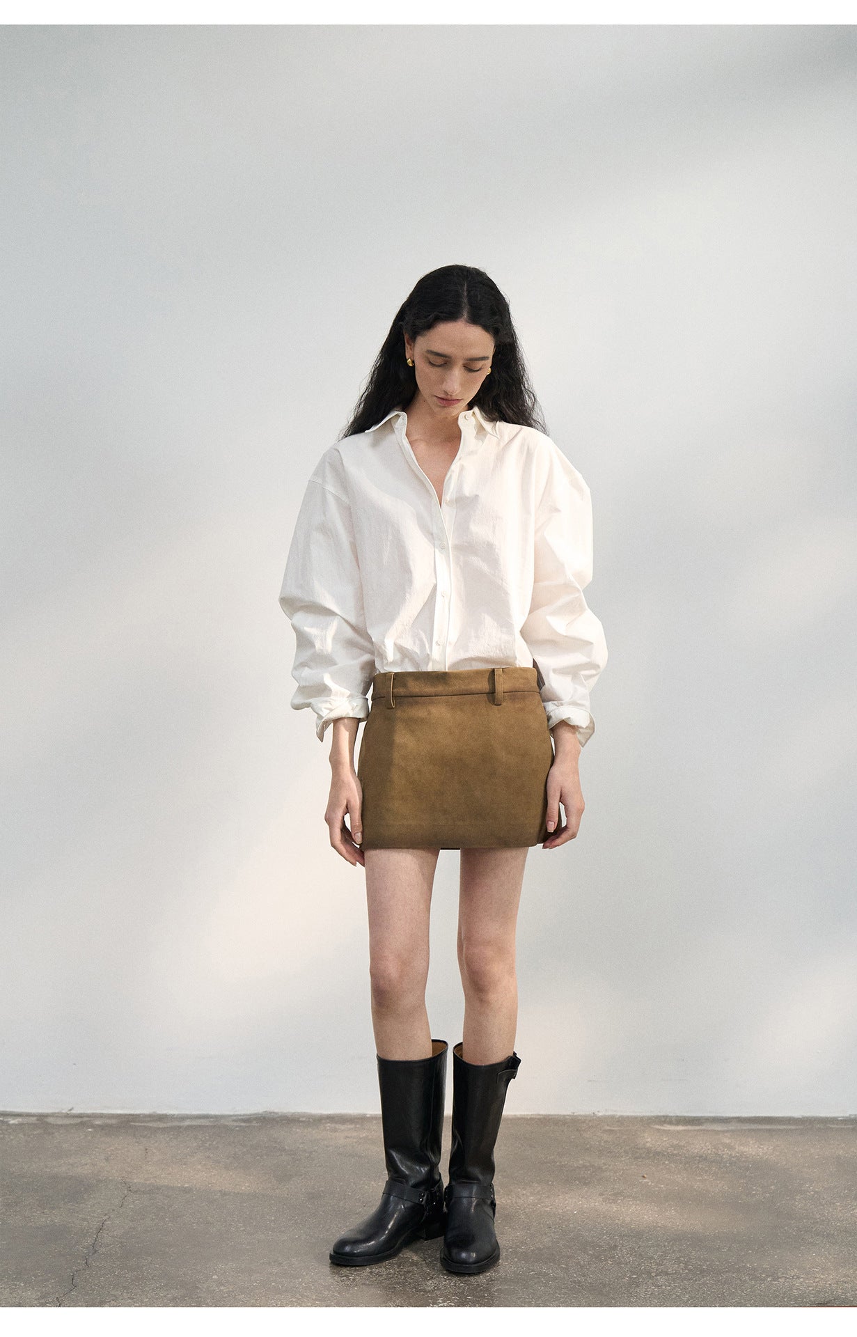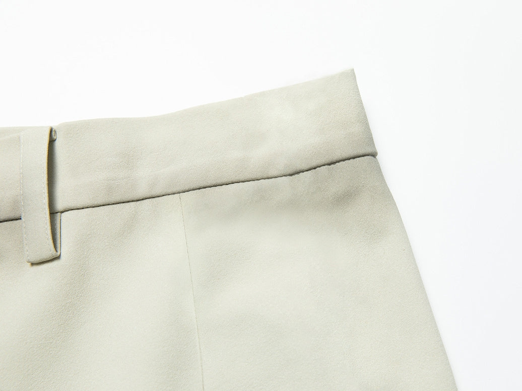 同素材の「スエードテーラードジャケット」と「スエードマイクロミニスカート」とセットアップでの着用もおすすめです。