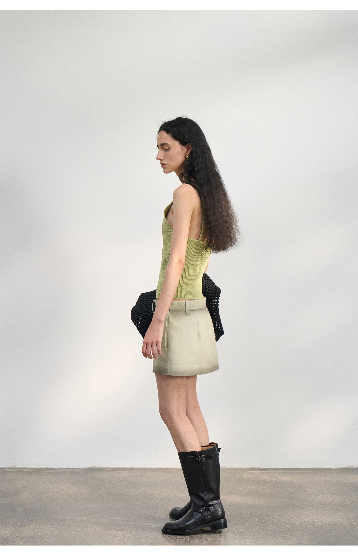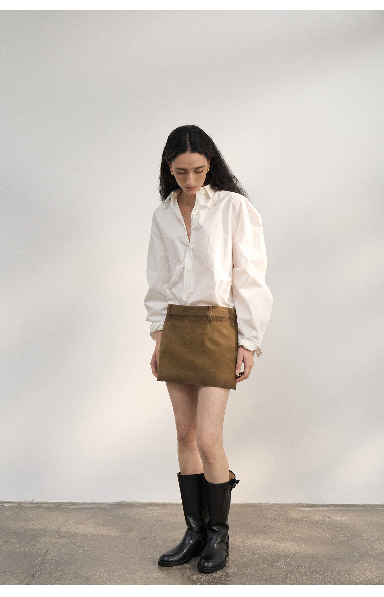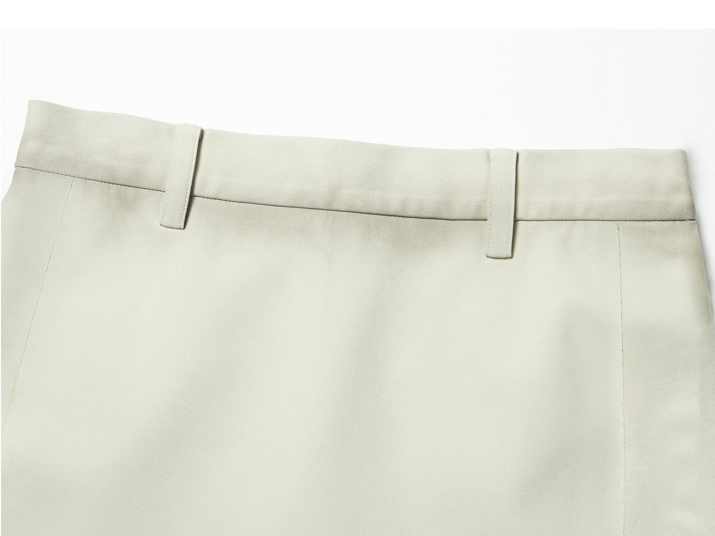 同素材の「スエードテーラードジャケット」と「スエードマイクロミニスカート」とセットアップでの着用もおすすめです。
