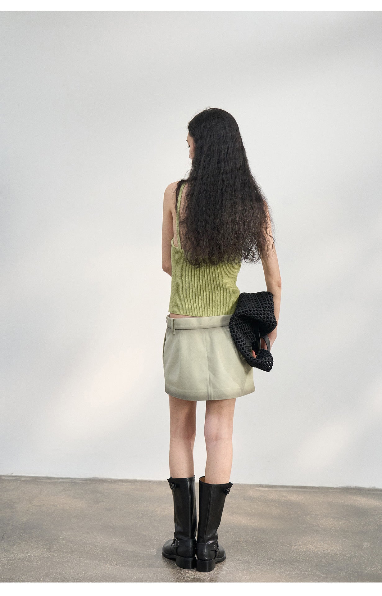 ローウエストのコンパクトなシルエットはすっきりした印象に。