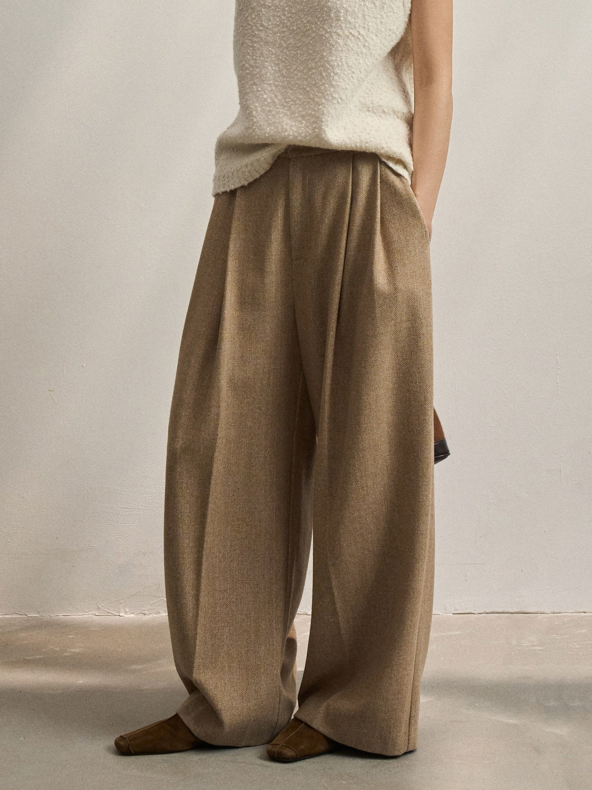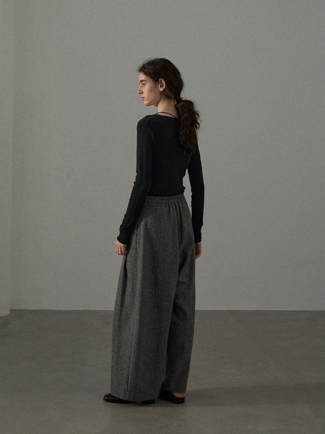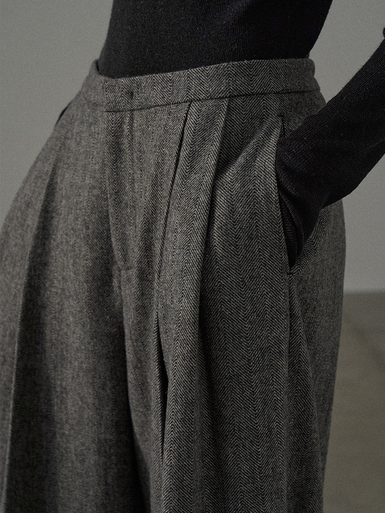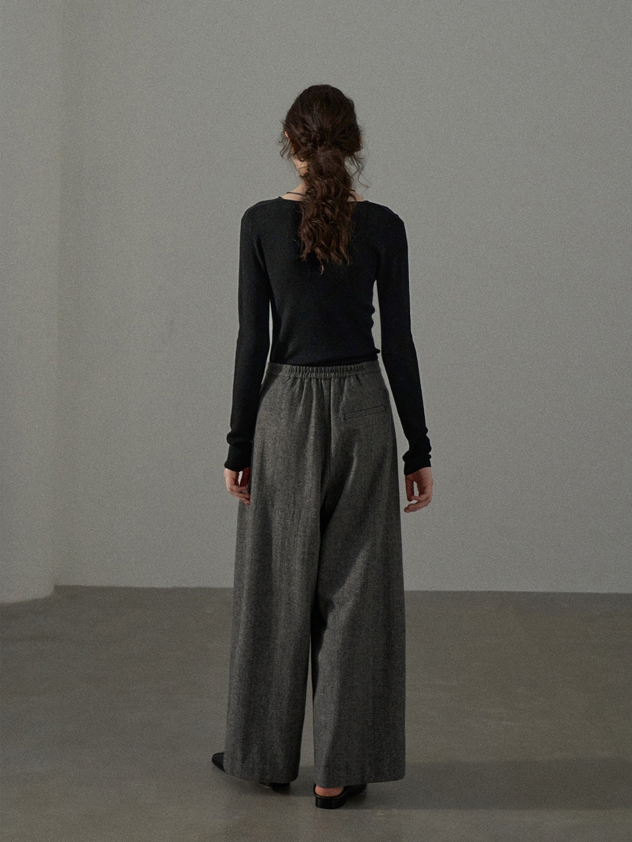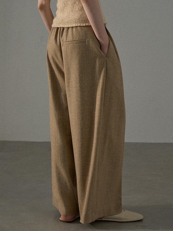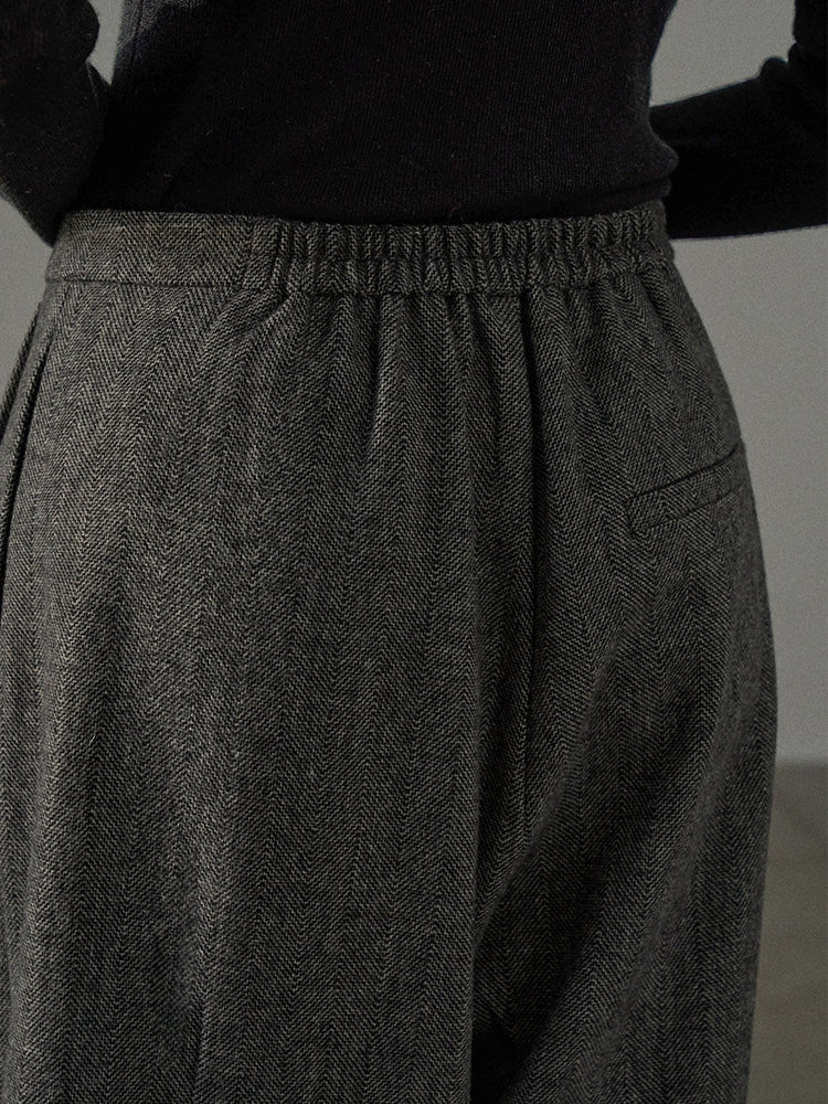 ウエストは後ろのみゴムになっておりラクな着心地もポイント。