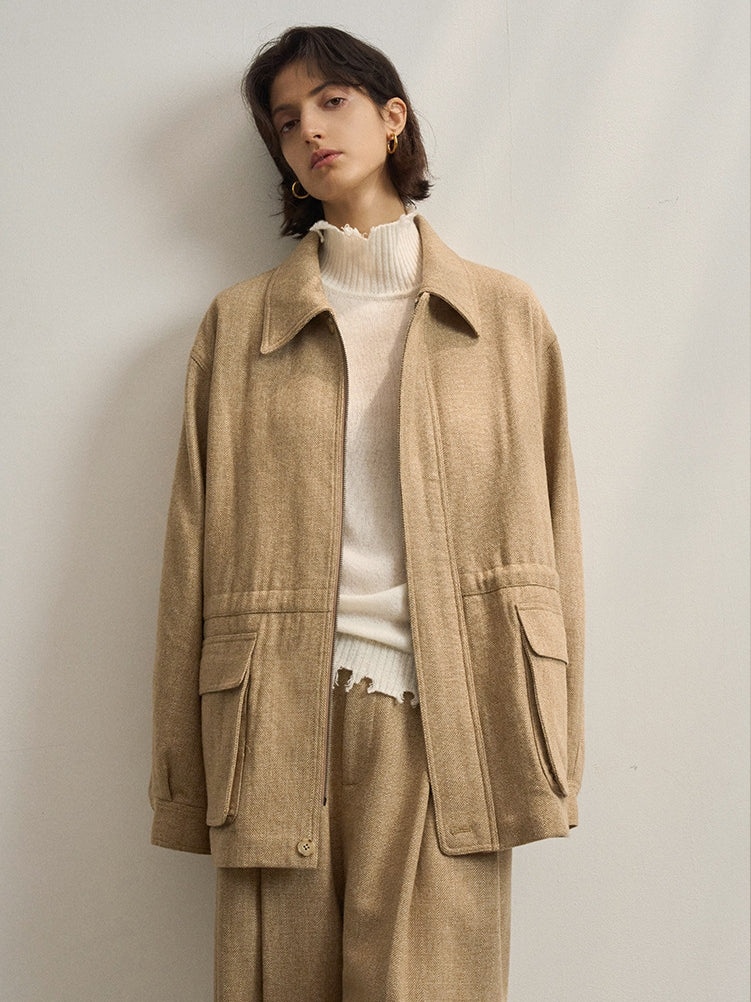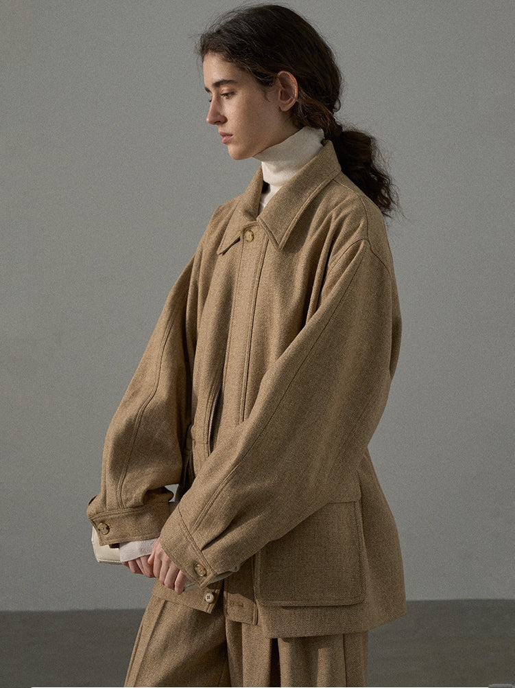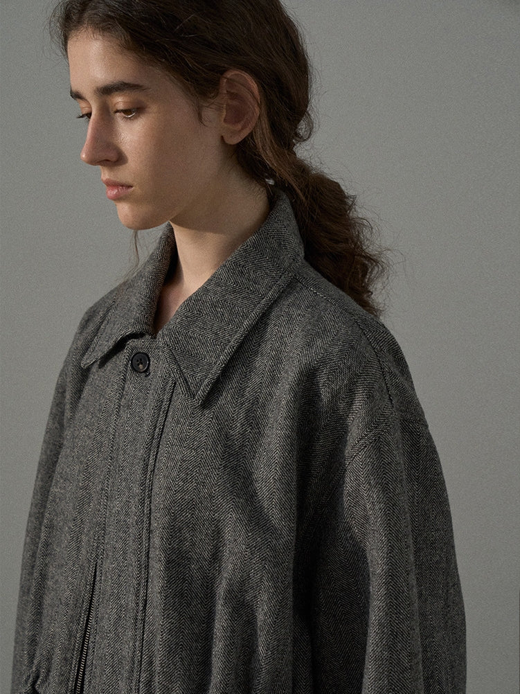 ミドル丈のツイードブルゾン。