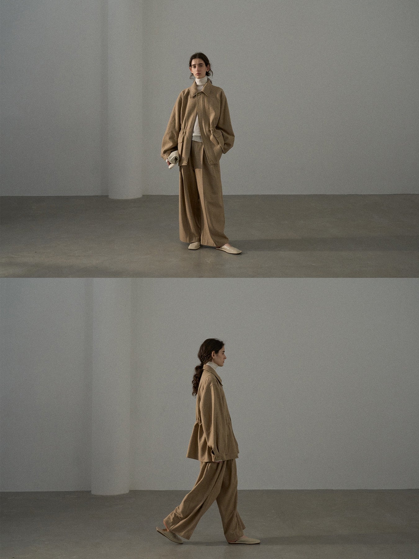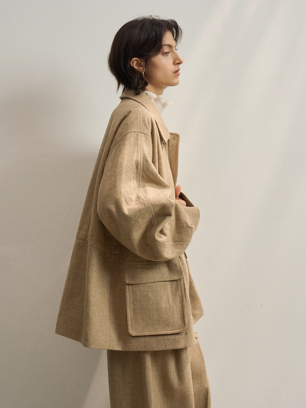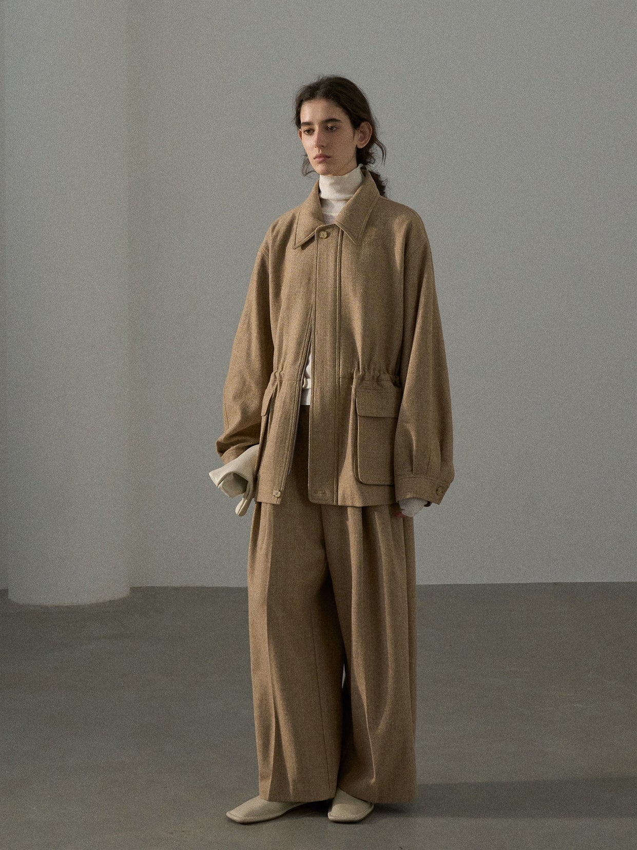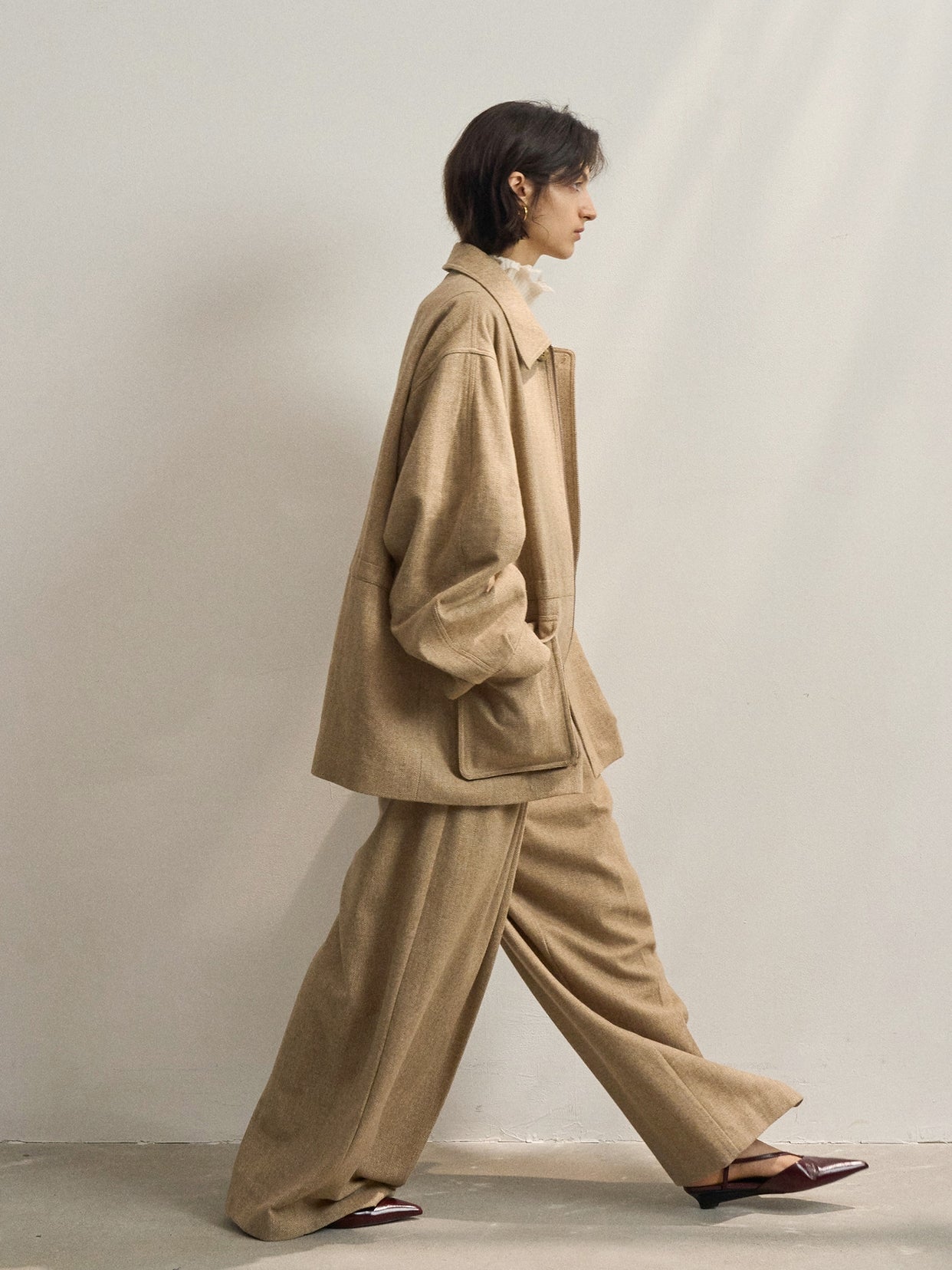 「ツイードタックワイドパンツ」とセットアップで着用が可能です。