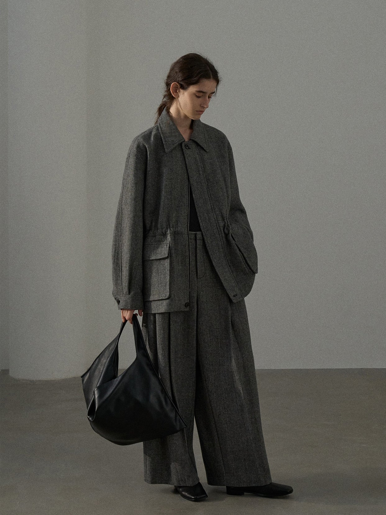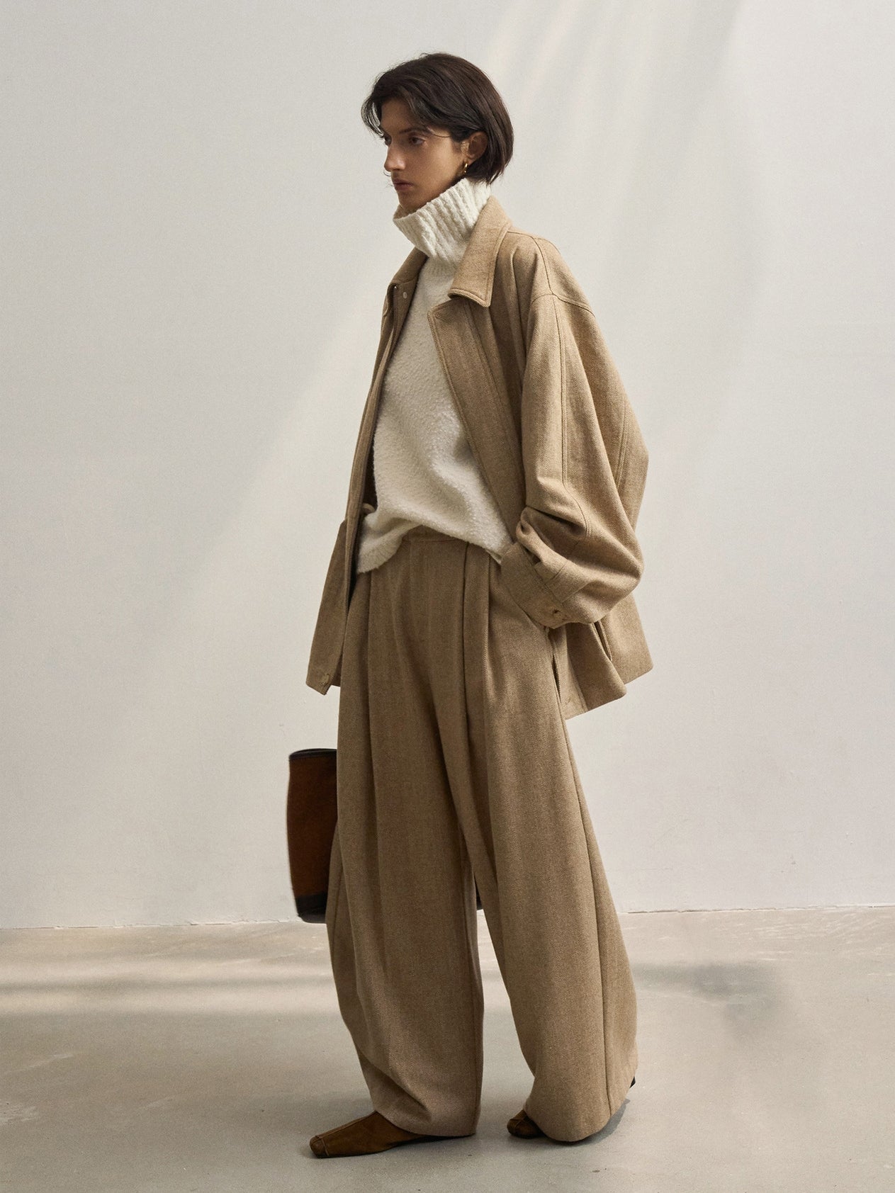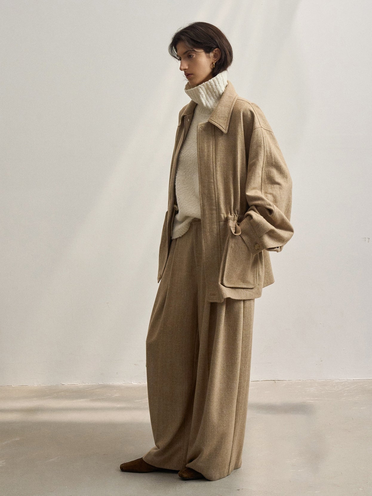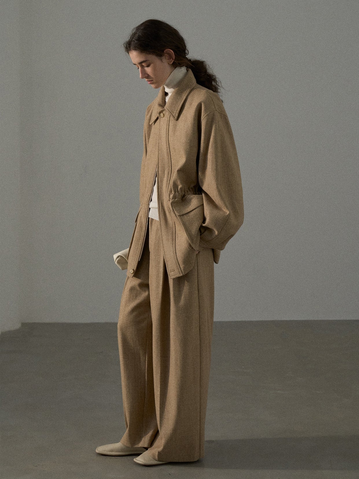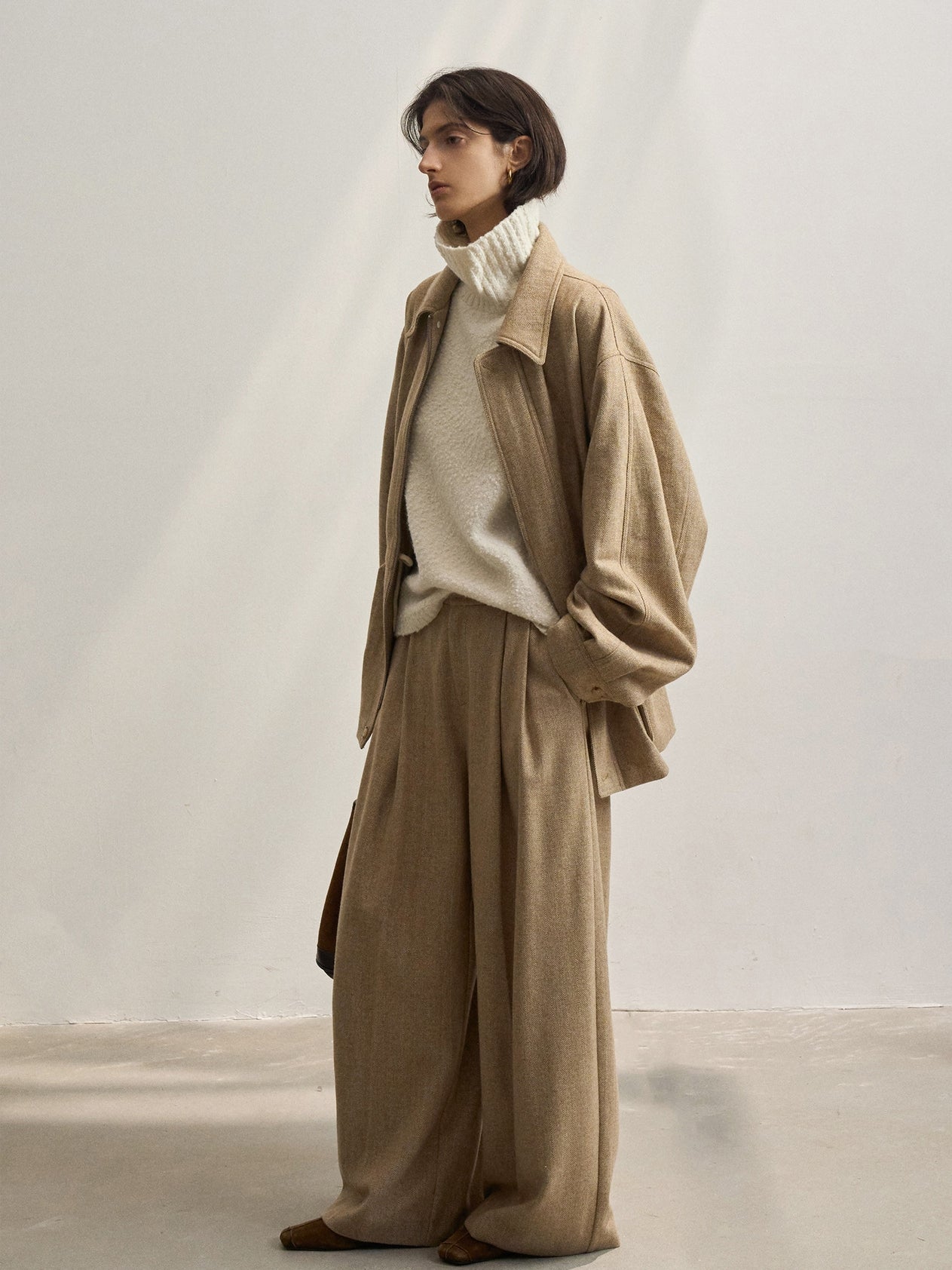 「ツイードタックワイドパンツ」とセットアップで着用が可能です。