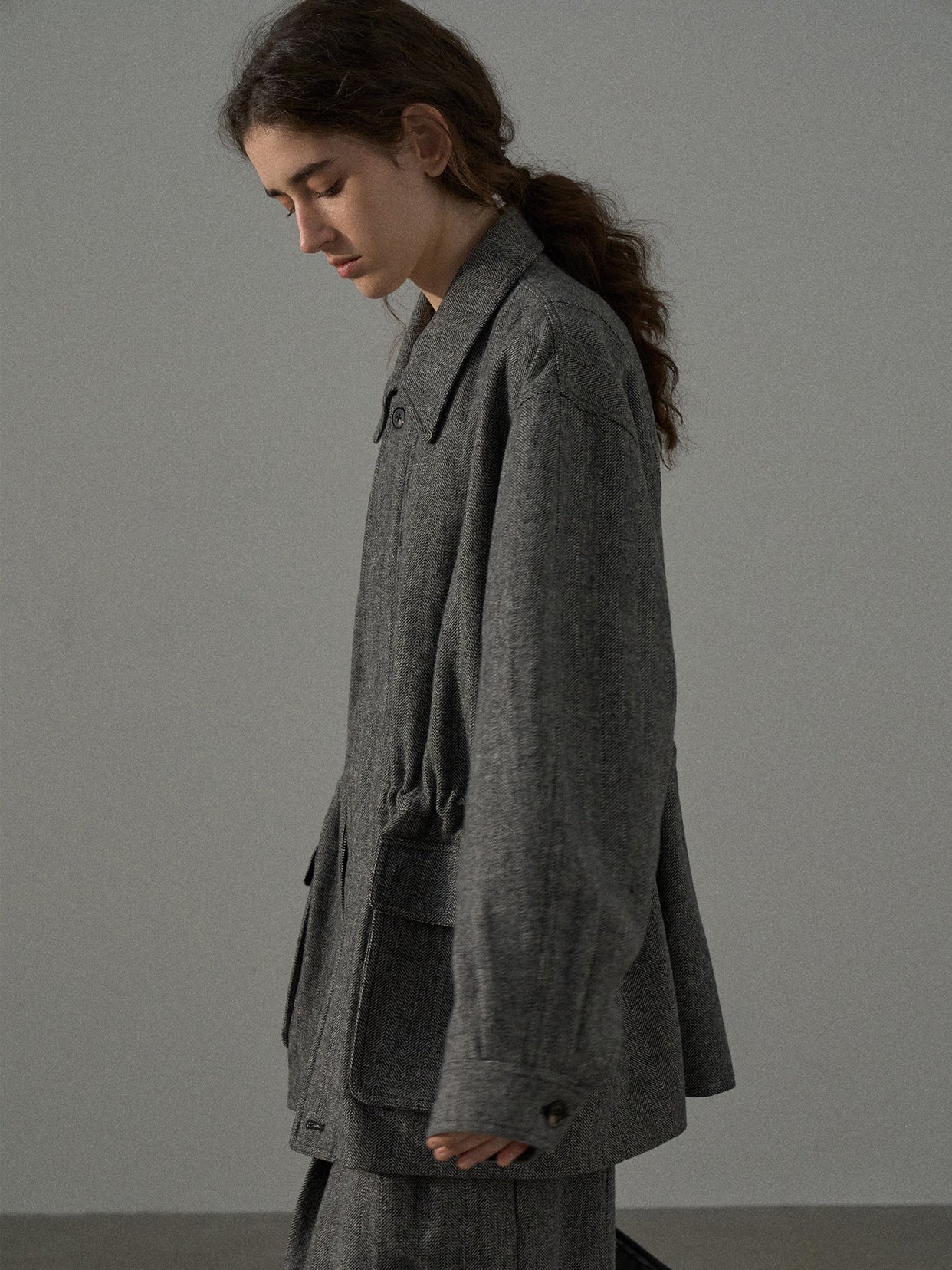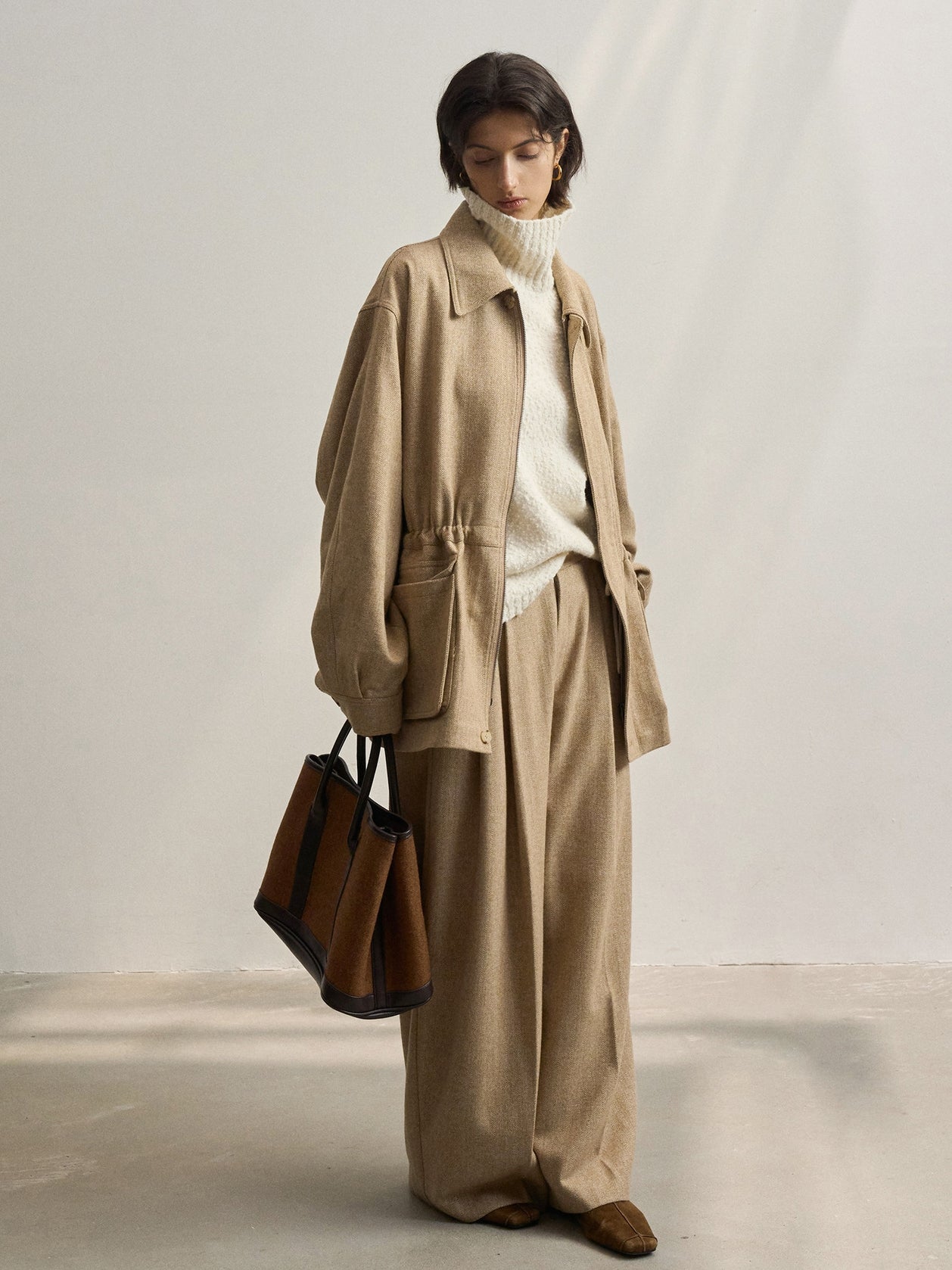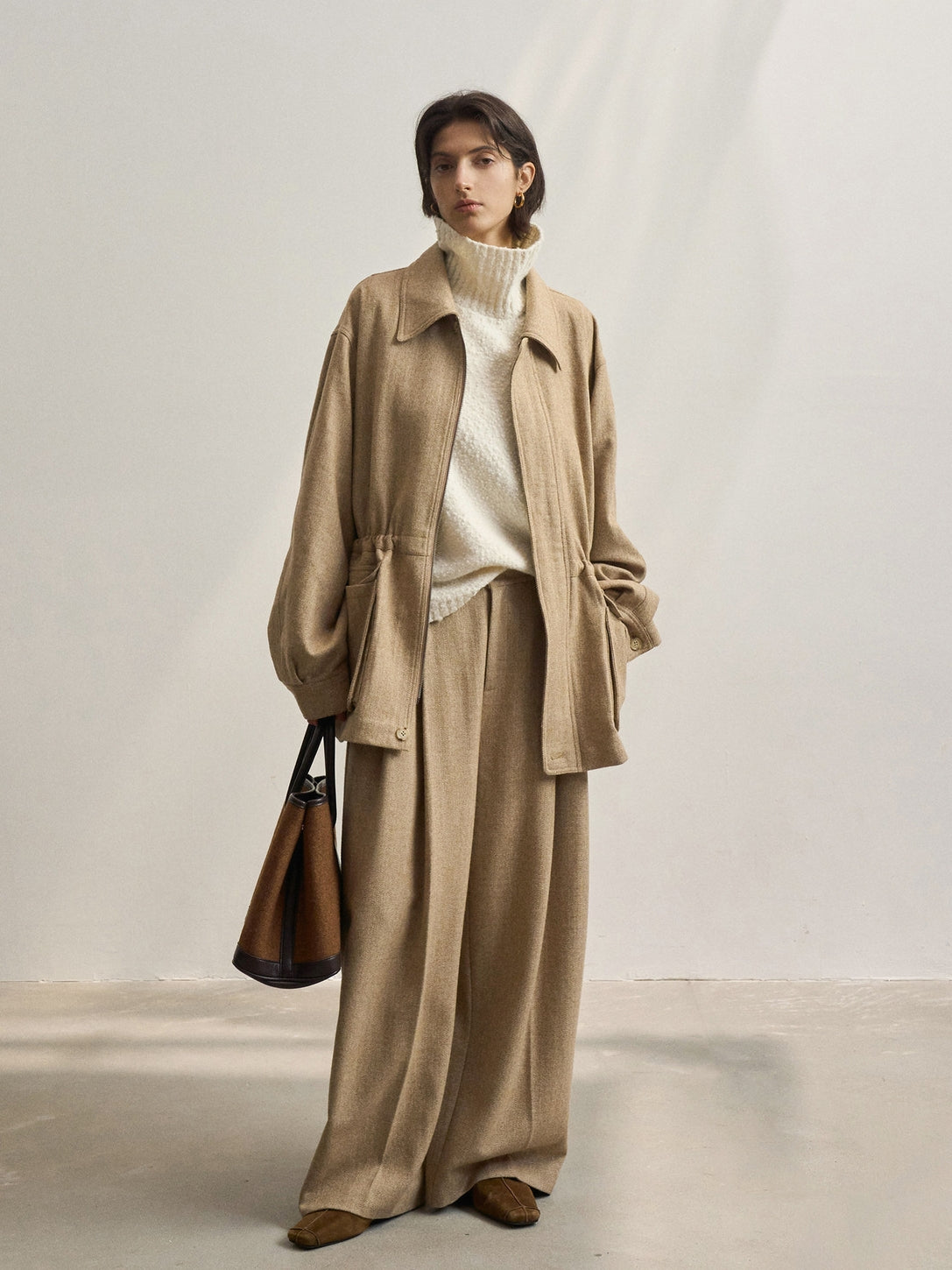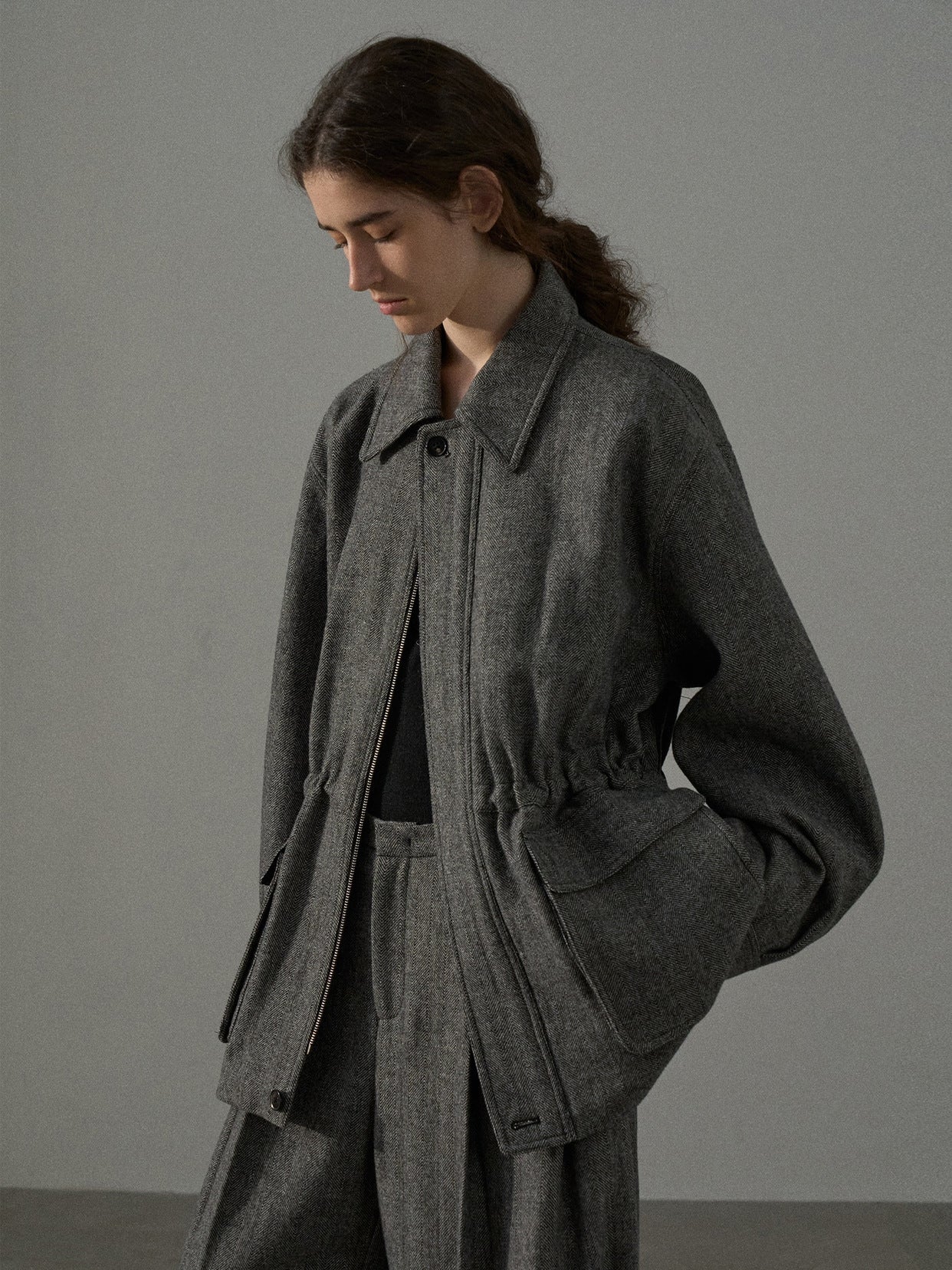 「ツイードタックワイドパンツ」とセットアップで着用が可能です。