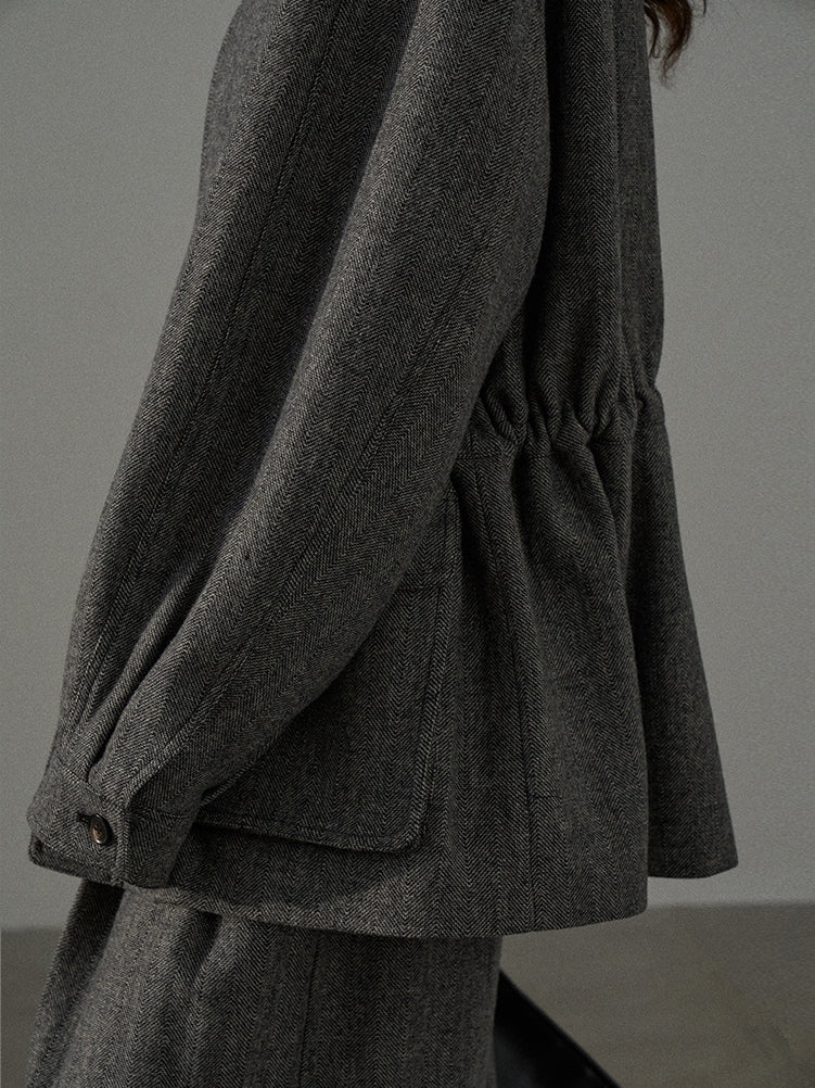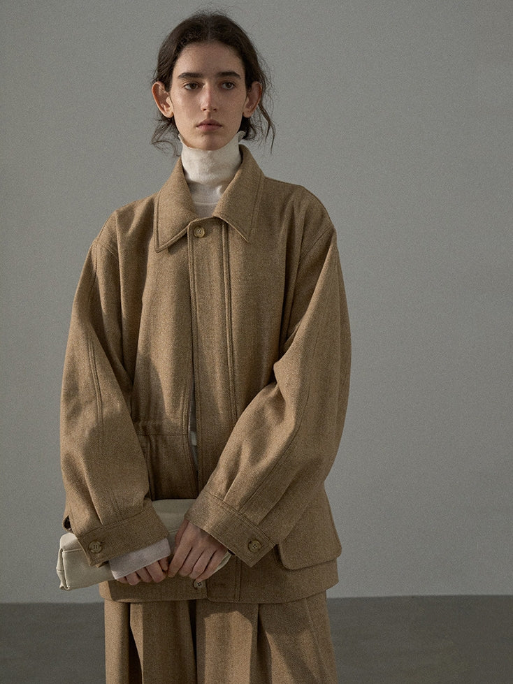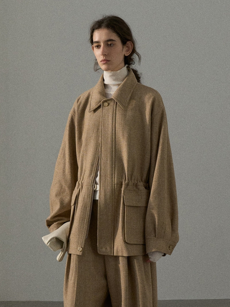 【セットアップ可】ツイードウエストギャザーブルゾン