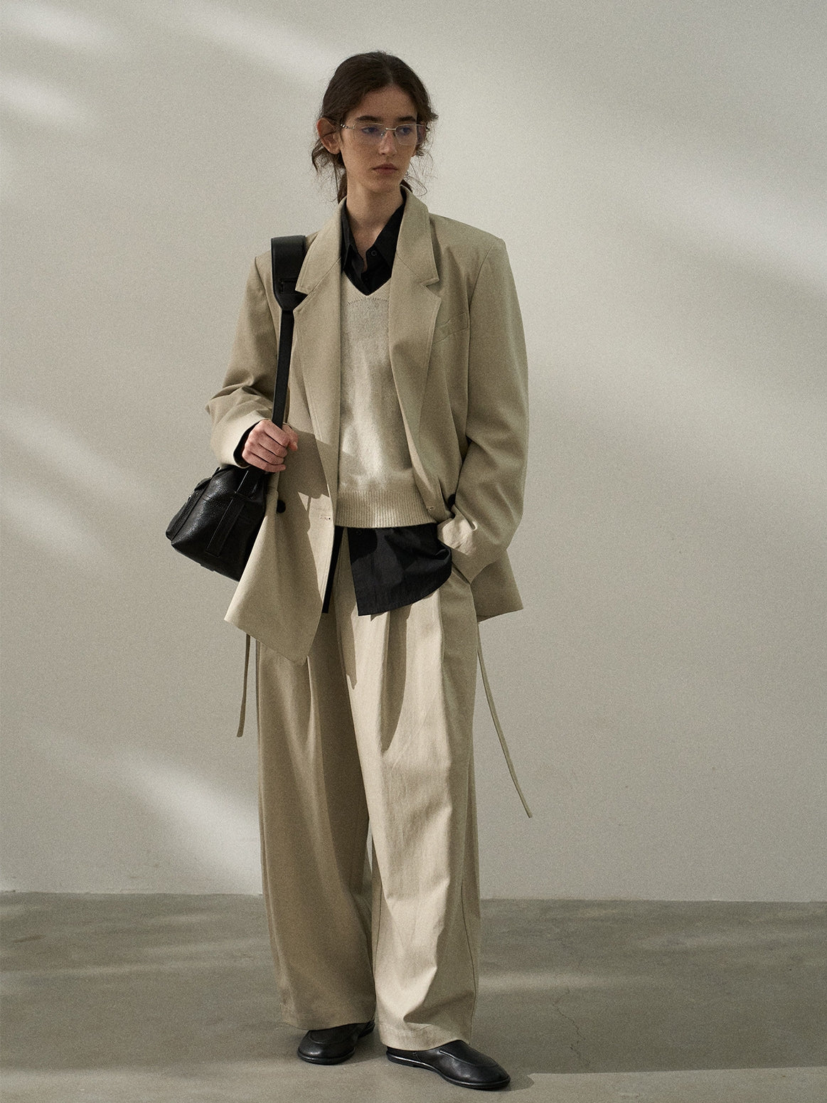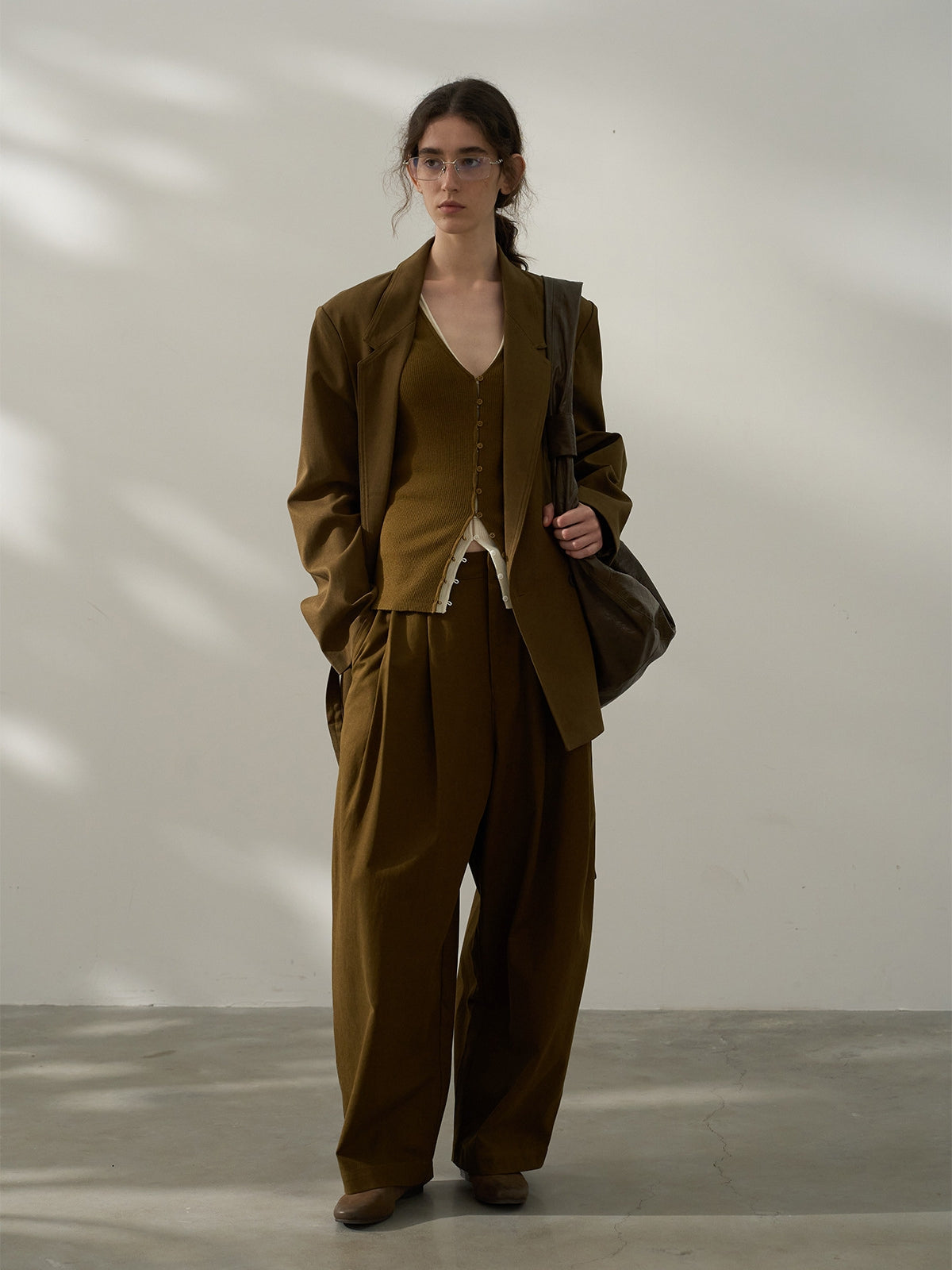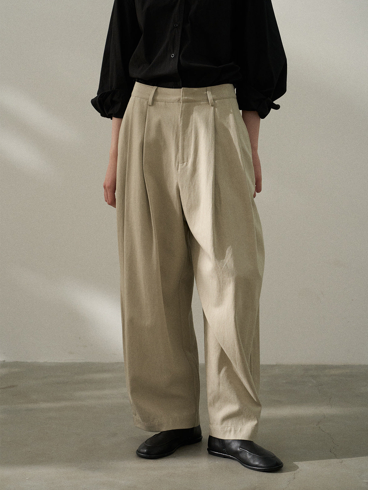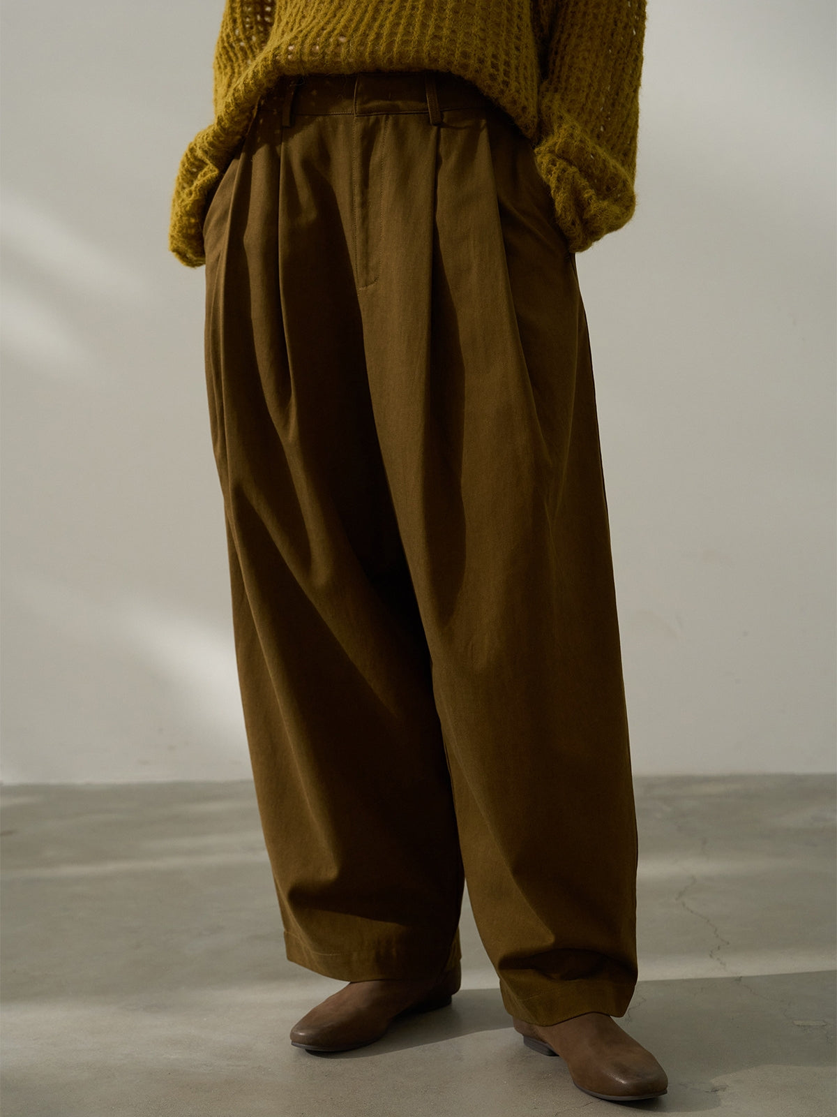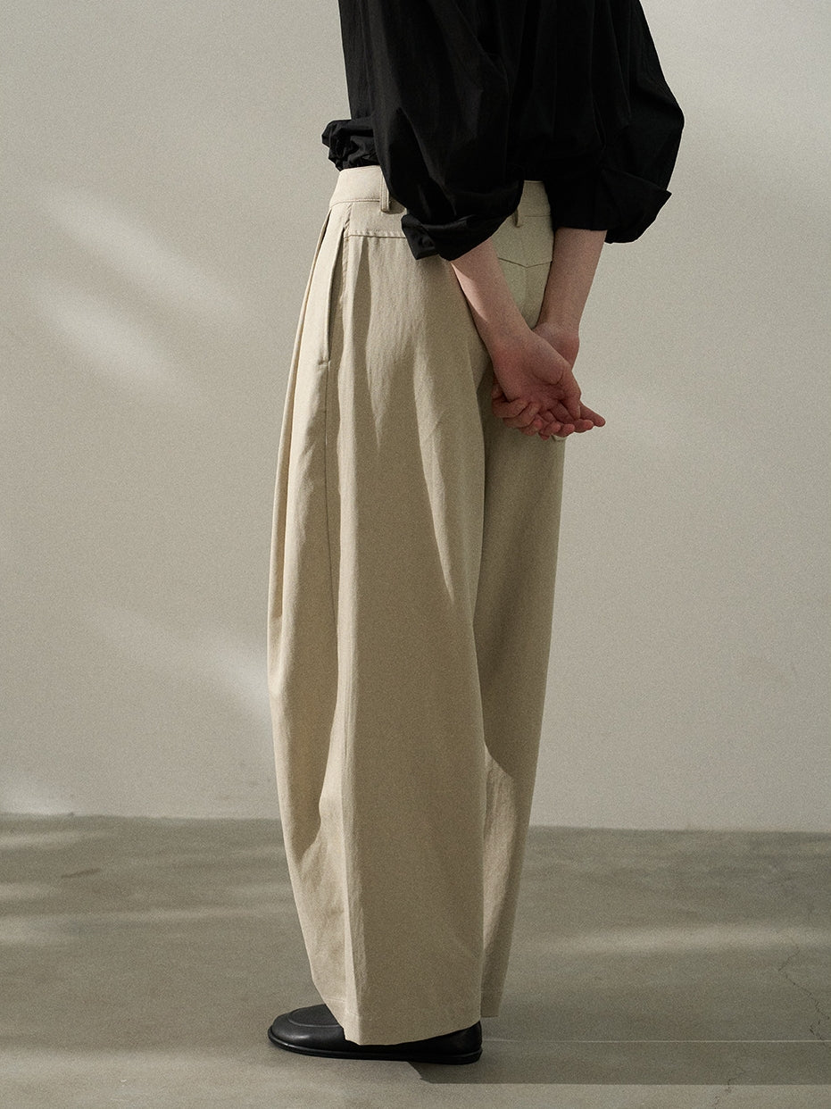 タックでかっちりとしつつルーズなシルエットで抜け感を演出。