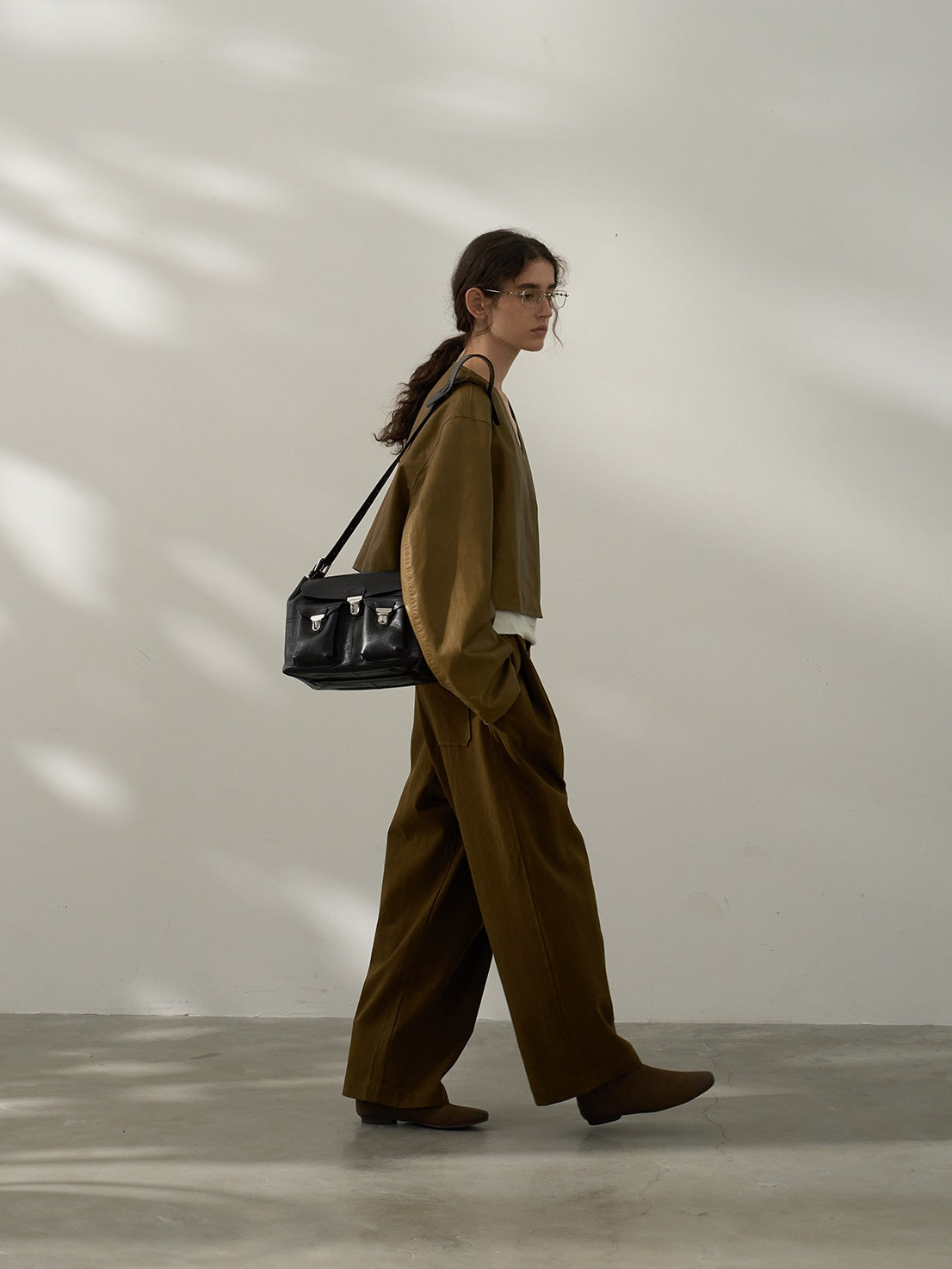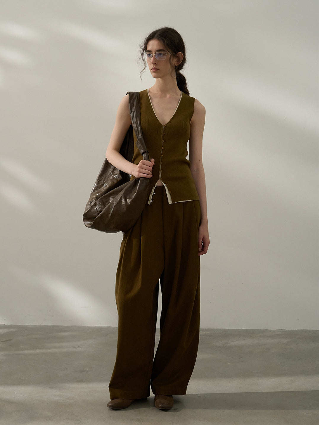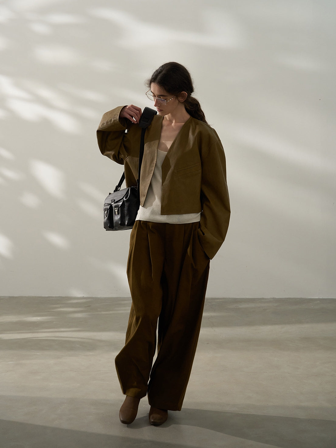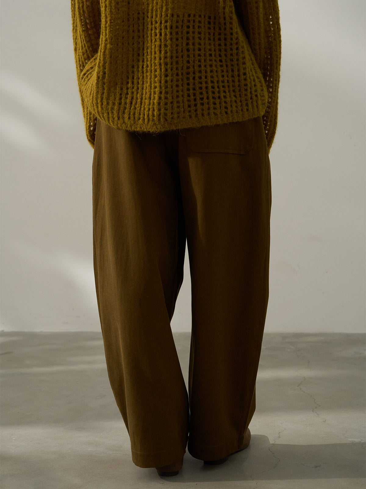 タックでかっちりとしつつルーズなシルエットで抜け感を演出。