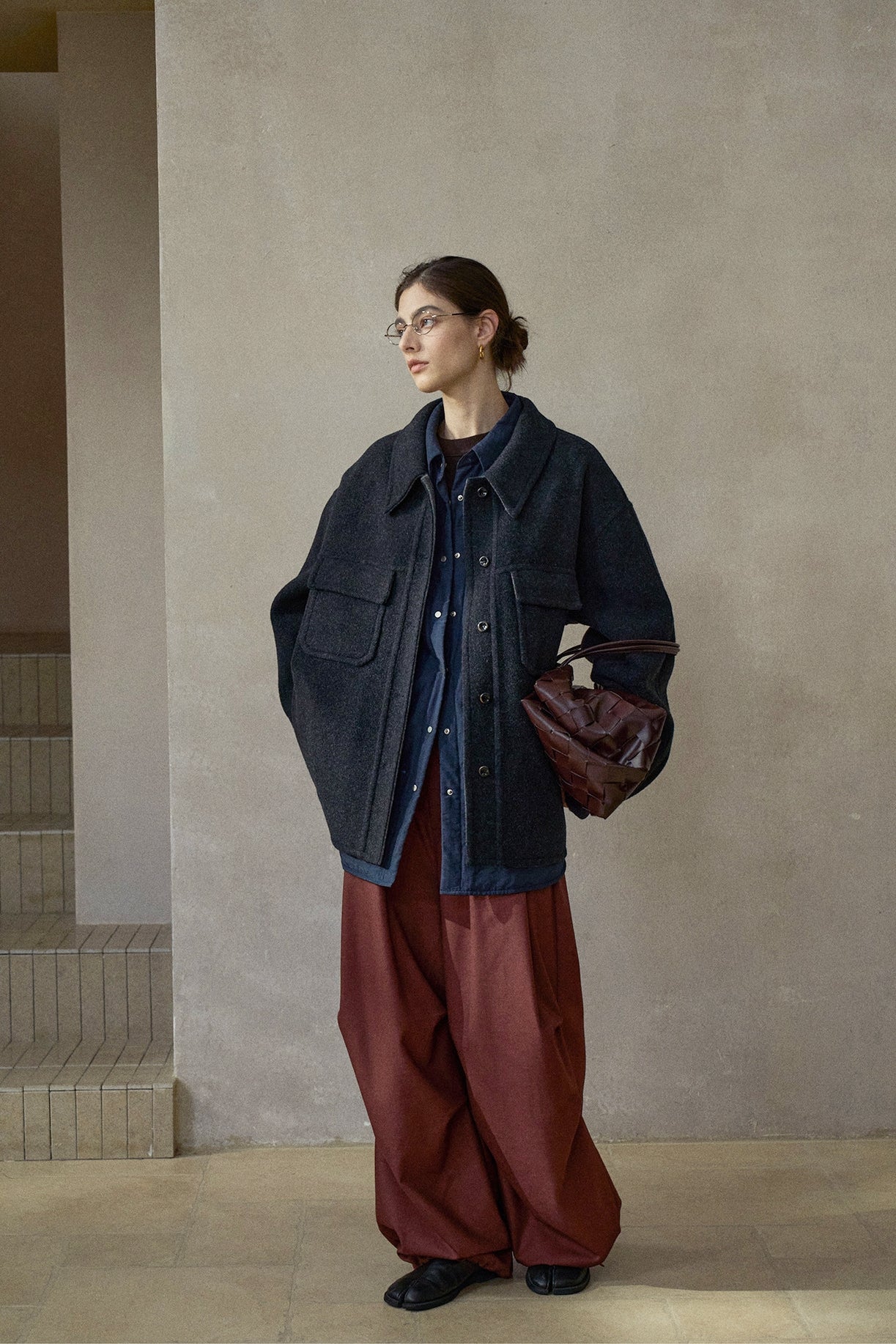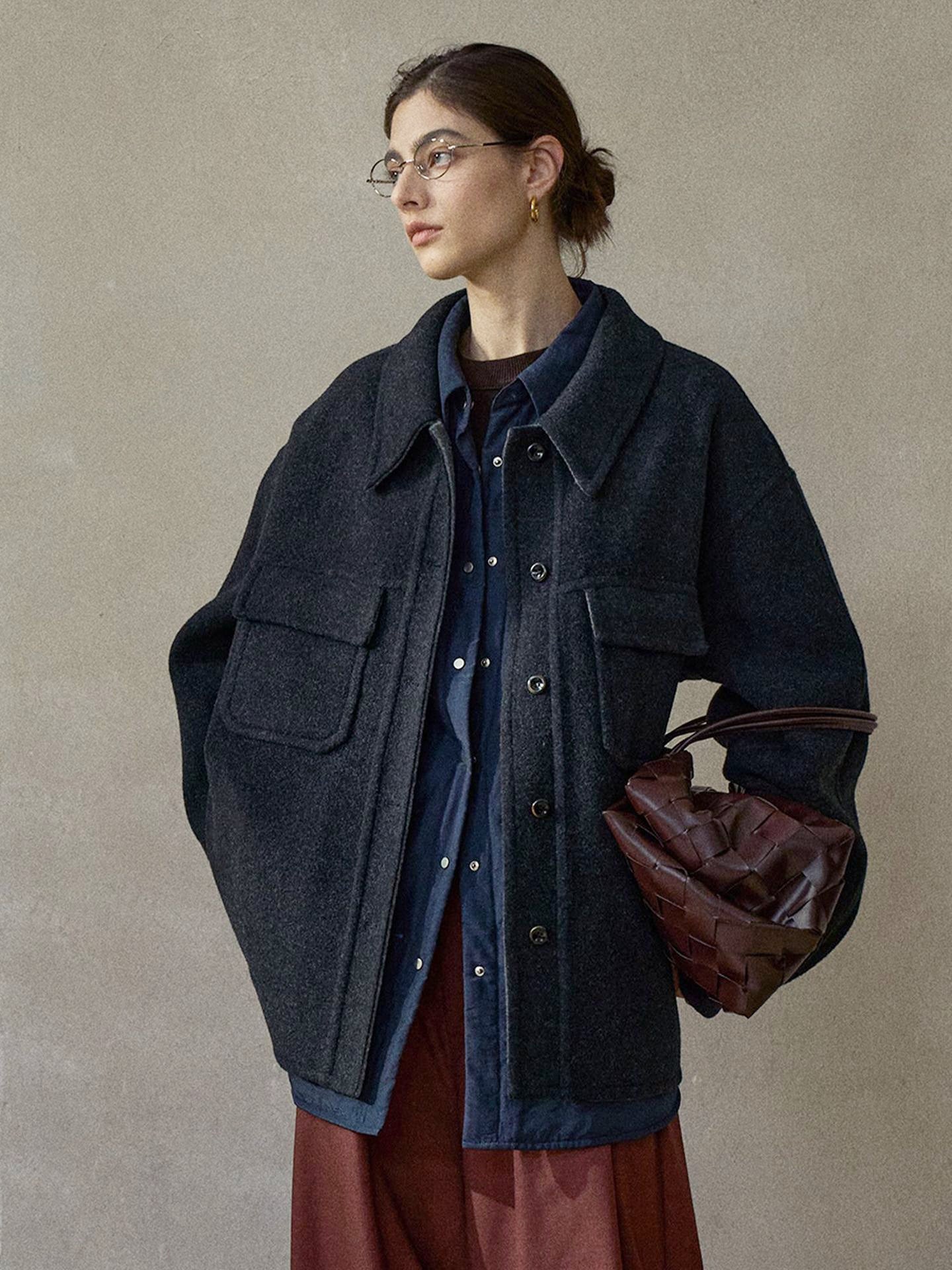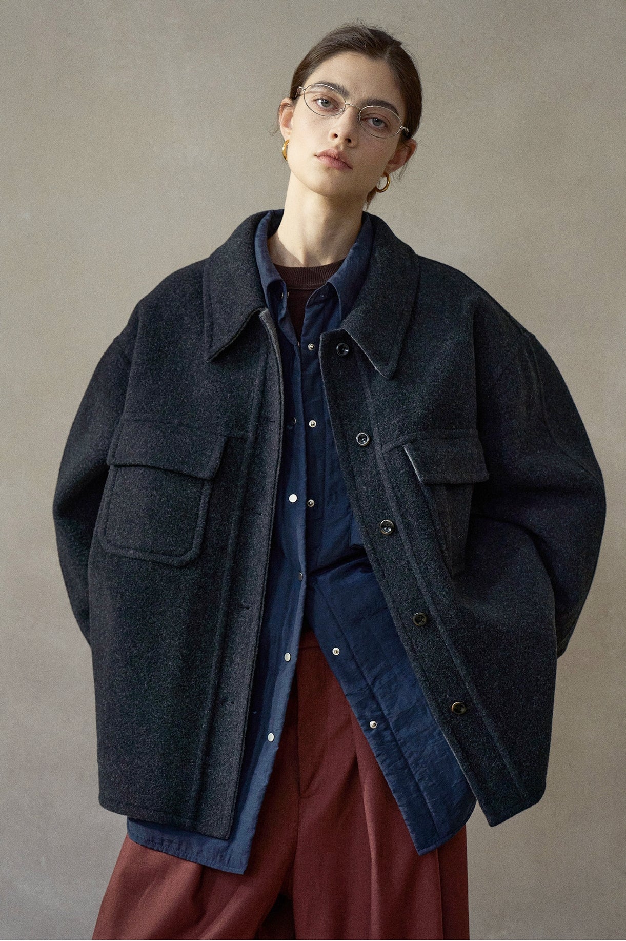 シャツ感覚でさらっと羽織れる、軽やかな仕立てのウールリバージャケット。