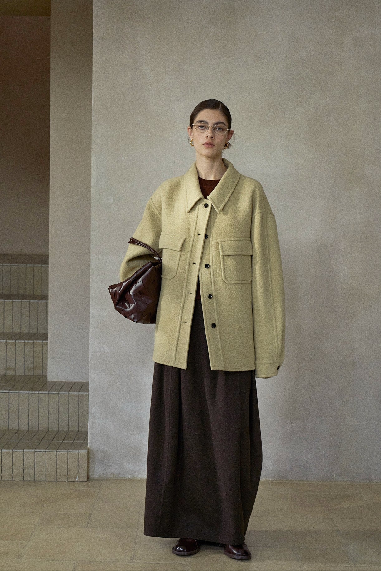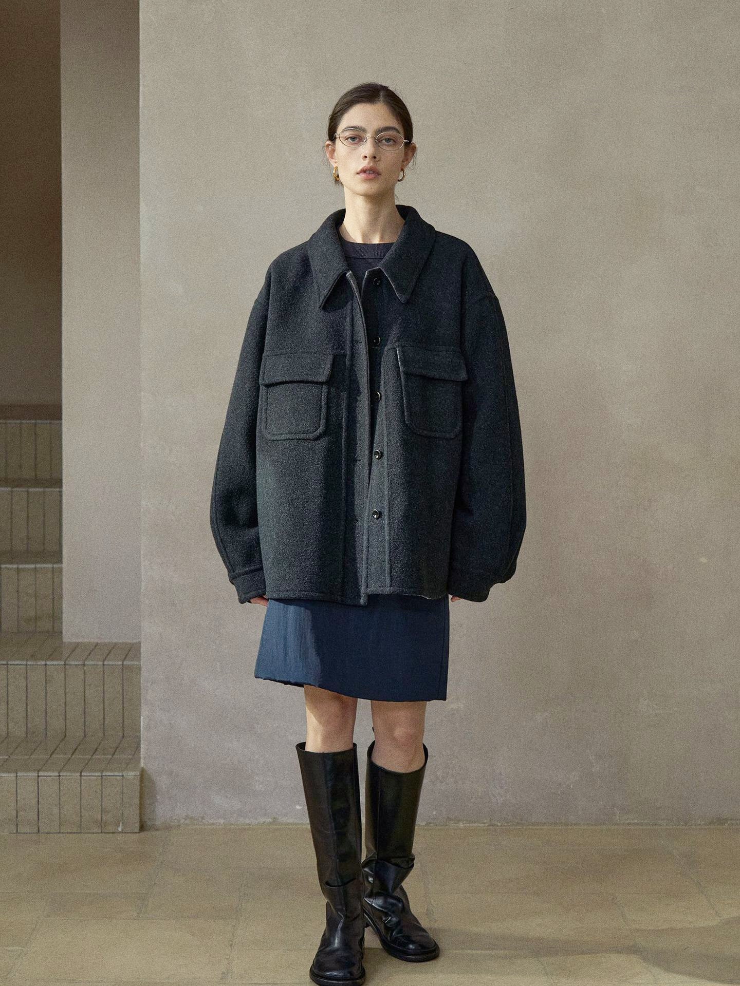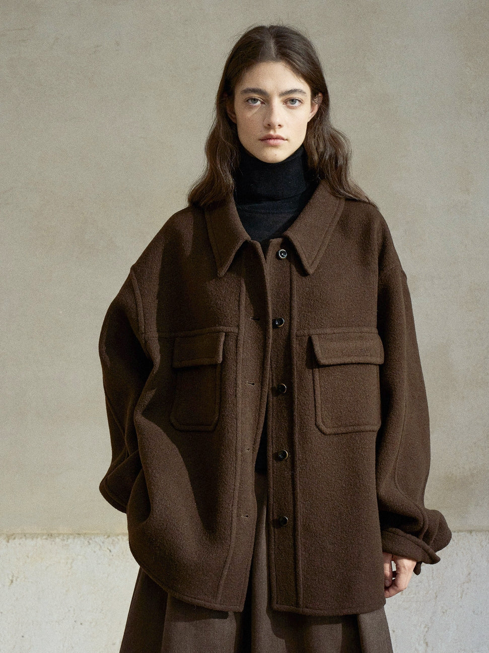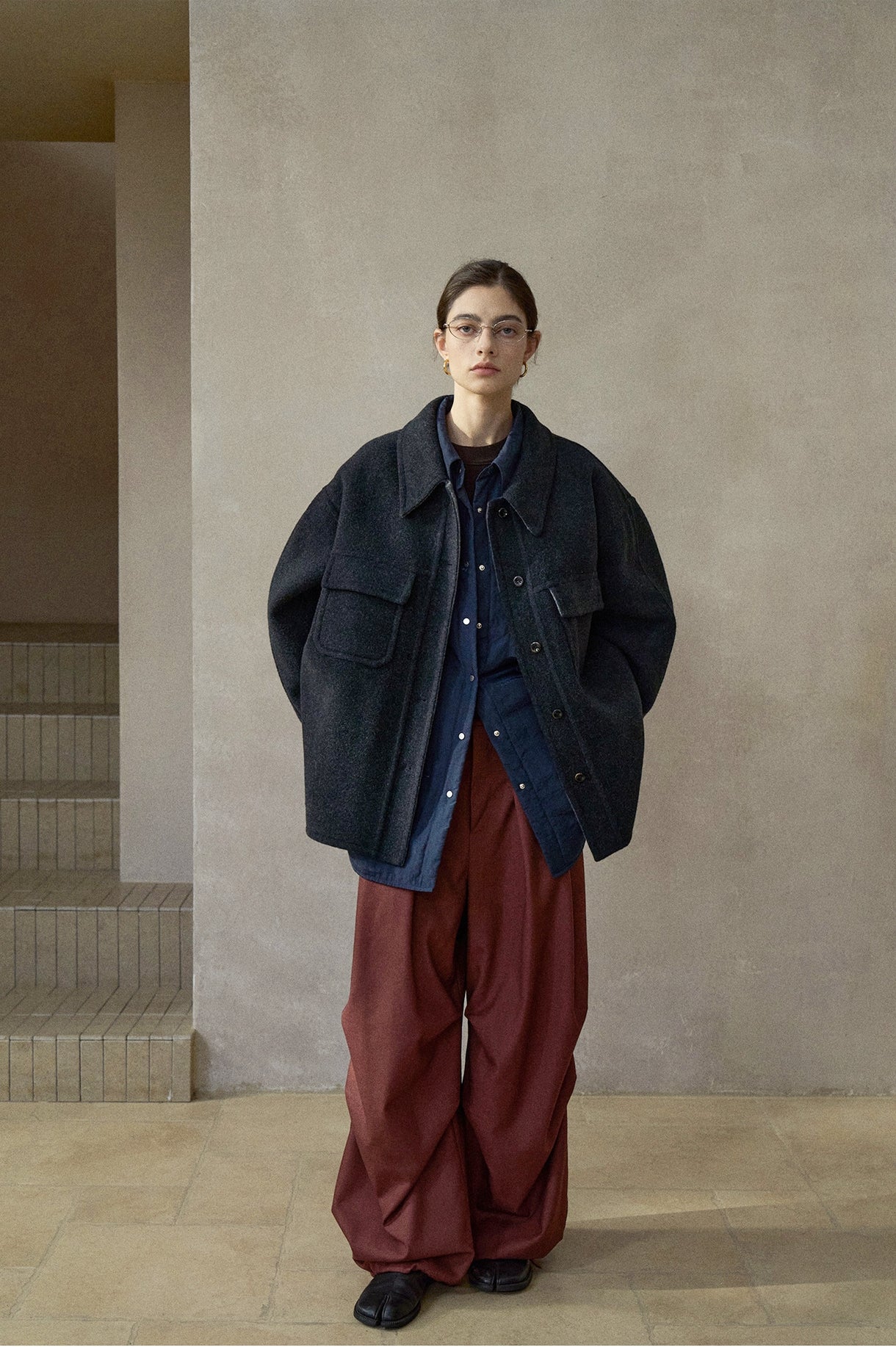 シャツ感覚でさらっと羽織れる、軽やかな仕立てのウールリバージャケット。